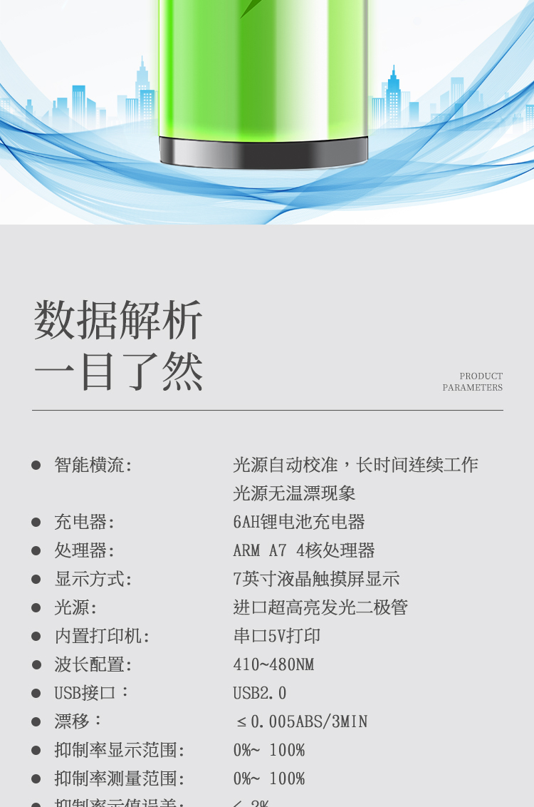 5、智能恒流穩(wěn)壓,光強(qiáng)自動(dòng)校準(zhǔn),長(zhǎng)時(shí)間連續(xù)工作光源無(wú)溫漂現(xiàn)象。
