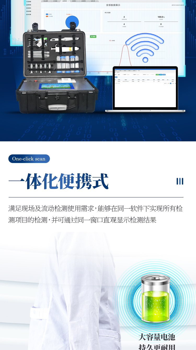 6、一體化便攜式快檢設備,滿足現(xiàn)場及流動檢測使用需求,能夠在同一軟件下實現(xiàn)所有檢測項目的檢測,并可通過同一窗口直觀顯示檢測結果。