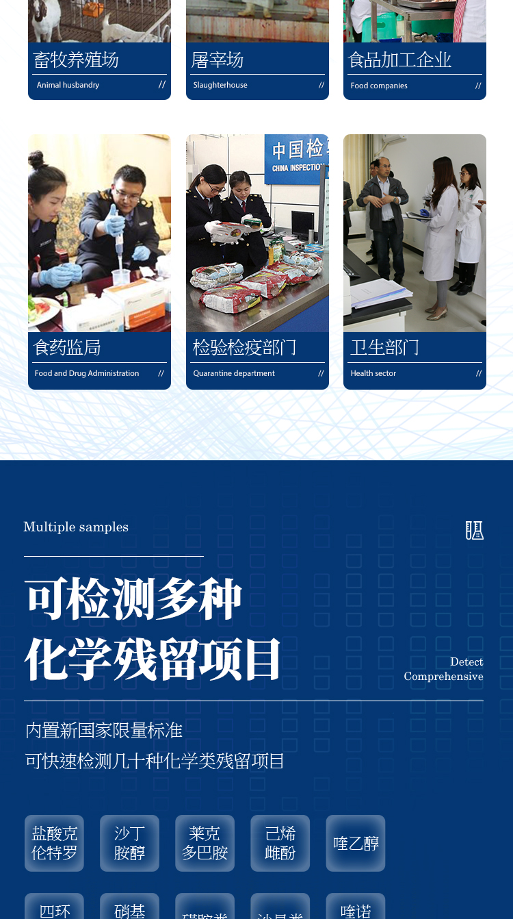 該氯霉素快速檢測系統(tǒng)設備為集成化食品安全快速檢測分析設備,廣泛應用于養(yǎng)殖場、屠宰場、食品肉產品深加工企業(yè)、檢驗檢疫部門、食藥監(jiān)局、衛(wèi)生部門、高教院校、科研院所、農業(yè)部門等單位使用。