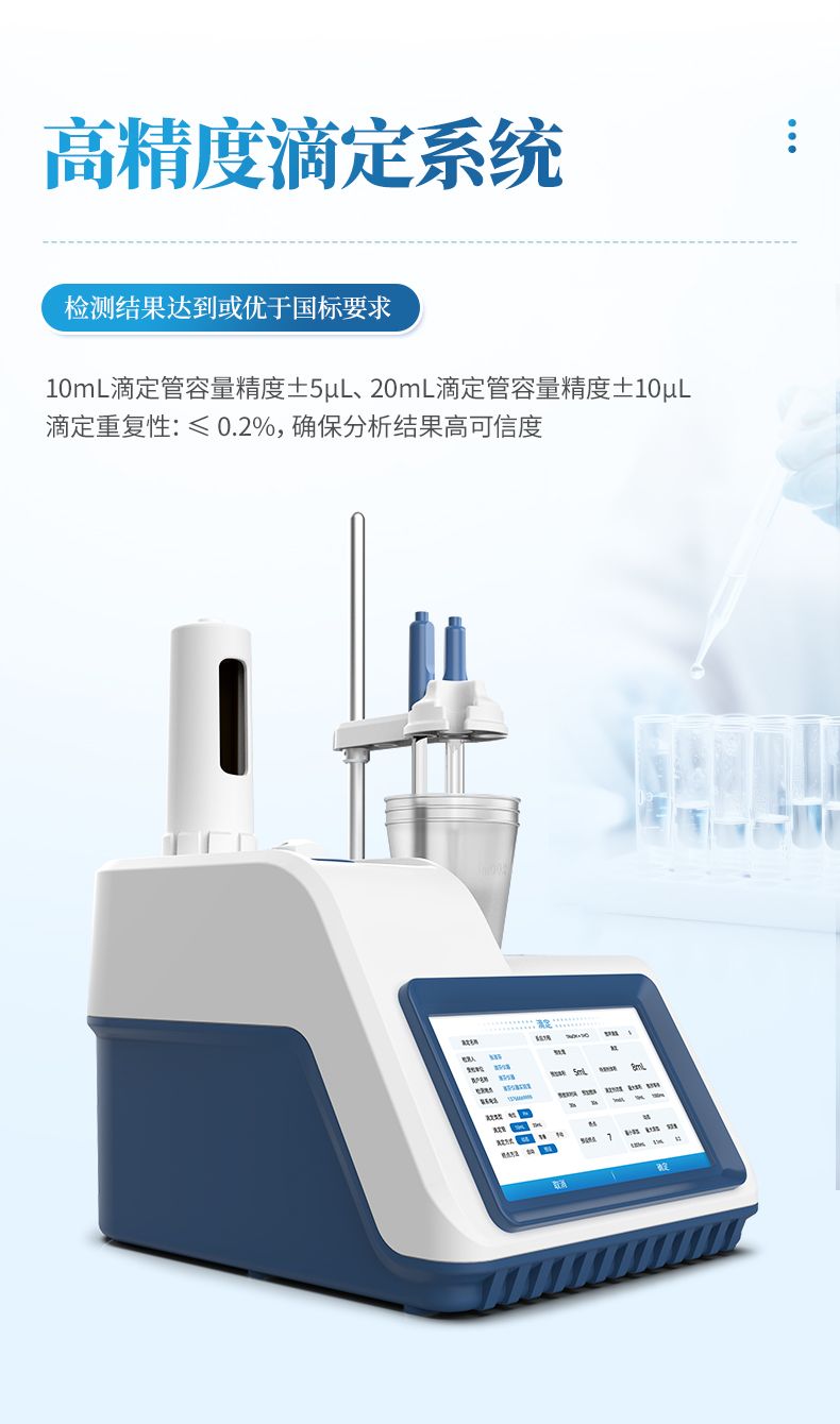 2.高精度滴定系統(tǒng),檢測結果達到或優(yōu)于國標要求。支持滴定管快速更換,維護便捷;