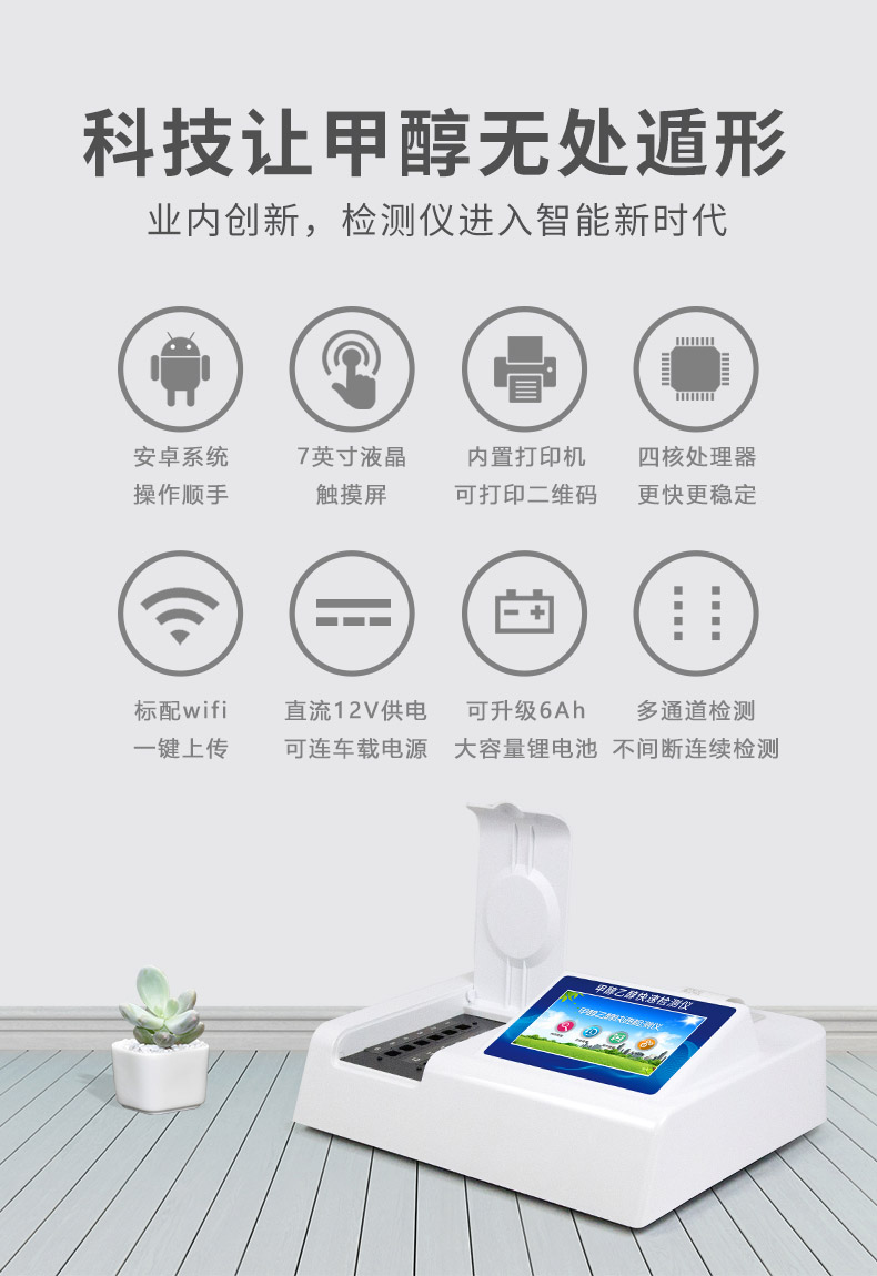 檢測項目:可快速定量檢測各類酒中的甲醇的含量,儀器預(yù)留其他項目檢測程序和端口,根據(jù)日后需求可方便的自主增加檢測項目。日后可升級為檢測,水產(chǎn)品,肉制品,面制品的綜合類型儀器。