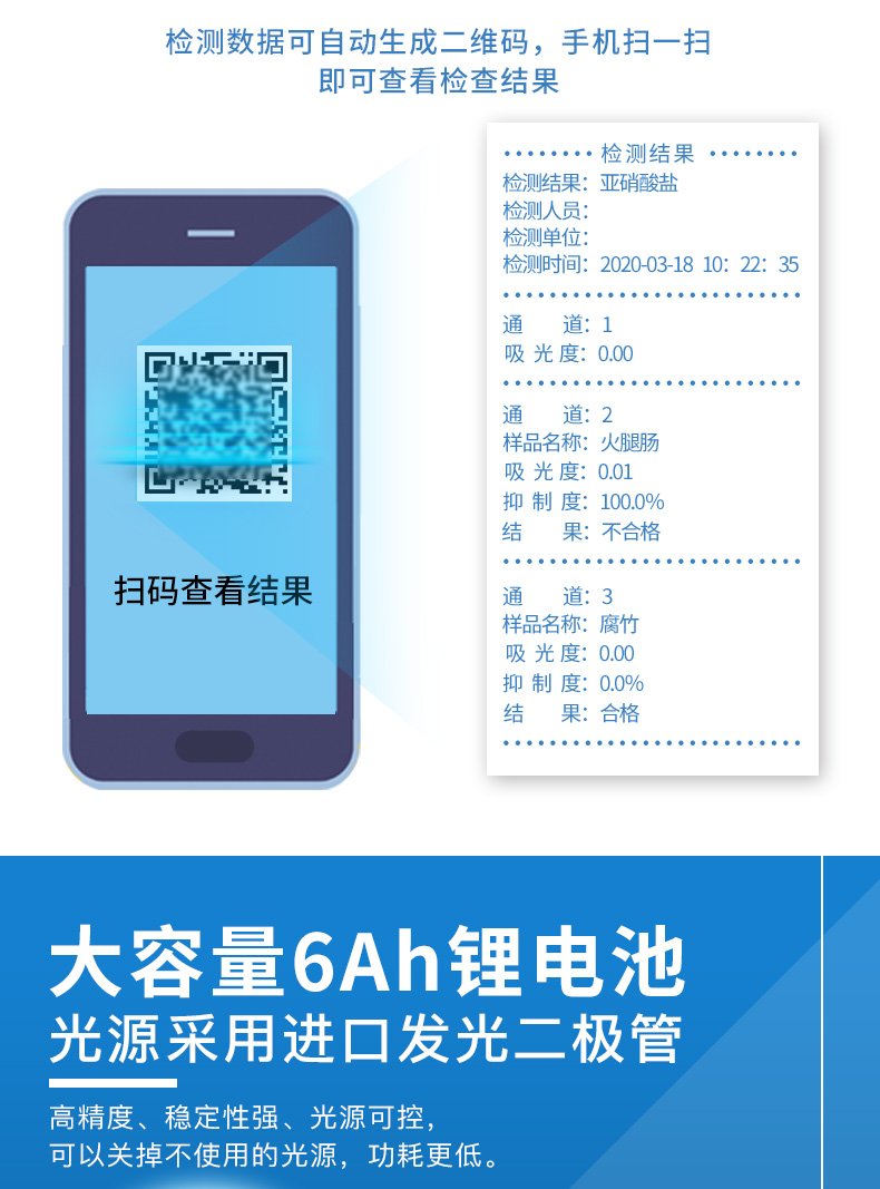 6、配備新一代嵌入式熱敏打印機,可選擇手動打印或者自動打印,檢測完成可自動打印檢測報告和二維碼。