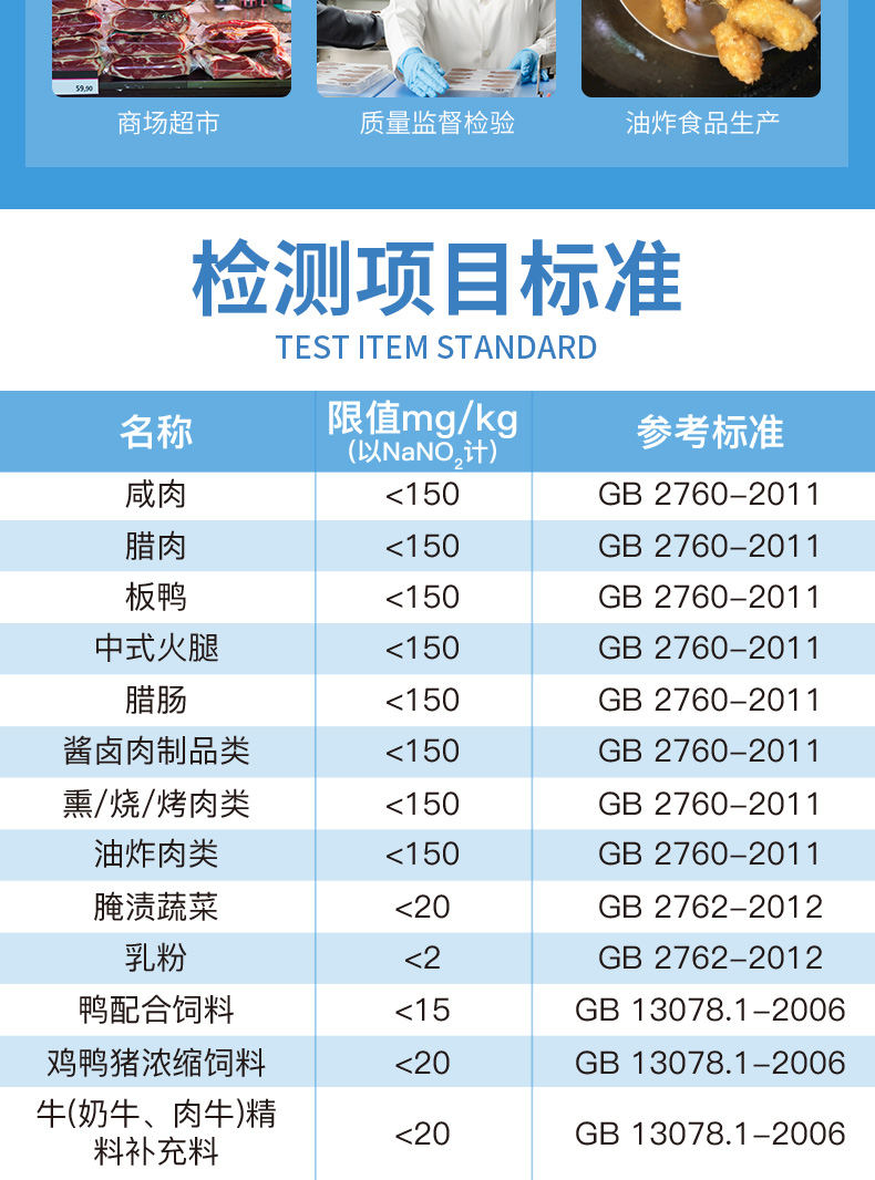 1、亞硝酸鹽檢測下限:1mg/kg