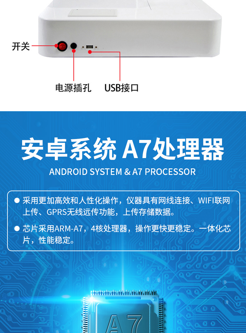 1、安卓智能操作系統(tǒng),采用更加高效和人性化操作,儀器具有網(wǎng)線連接、wifi聯(lián)網(wǎng)上傳、GPRS無線遠傳功能,快速上傳數(shù)據(jù)。