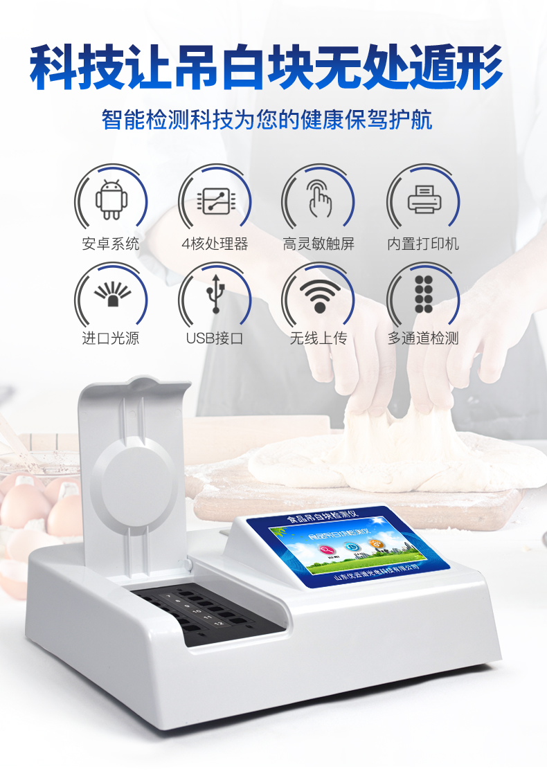 1、 檢測(cè)項(xiàng)目:用于快速檢測(cè)食品中吊白塊,儀器預(yù)留其他項(xiàng)目檢測(cè)程序和端口,根據(jù)日后需求可方便的自主增加檢測(cè)項(xiàng)目。日后可升級(jí)為檢測(cè),水產(chǎn)品,肉制品,面制品的綜合類型儀器。