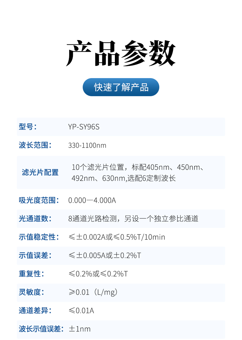*濾光片配置:10個(gè)濾光片位置,標(biāo)配405nm、450nm、492nm、630nm,選配6定制波長(zhǎng)