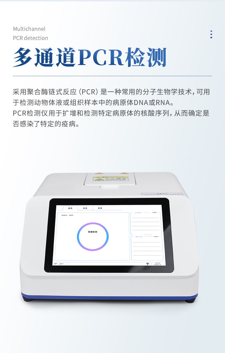 我公司開發(fā)的動物/寵物疫病檢測儀采用聚合酶鏈式反應(PCR)是一種常用的分子生物學技術,可用于檢測動物體液或組織樣本中的病原體DNA或RNA。PCR檢測儀用于擴增和檢測特定病原體的核酸序列,從而確定是否感染了特定的疫病。