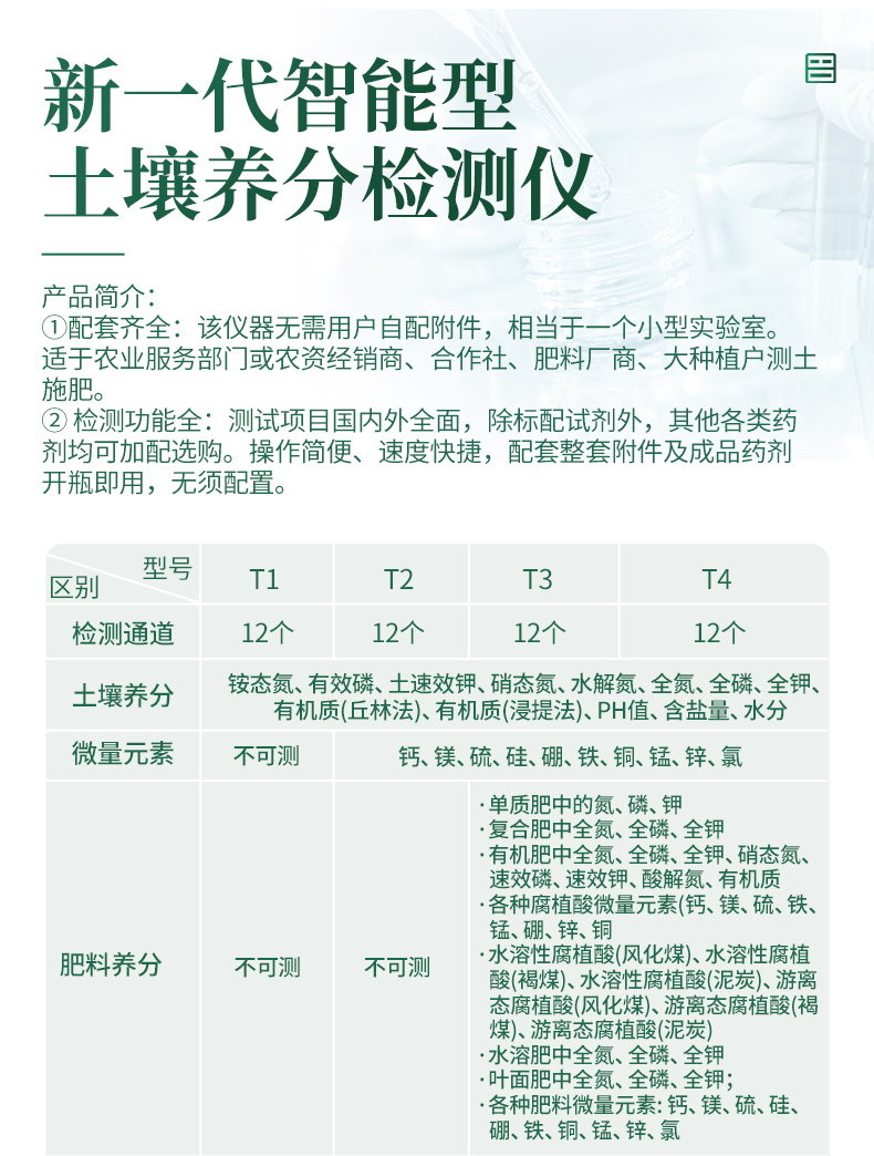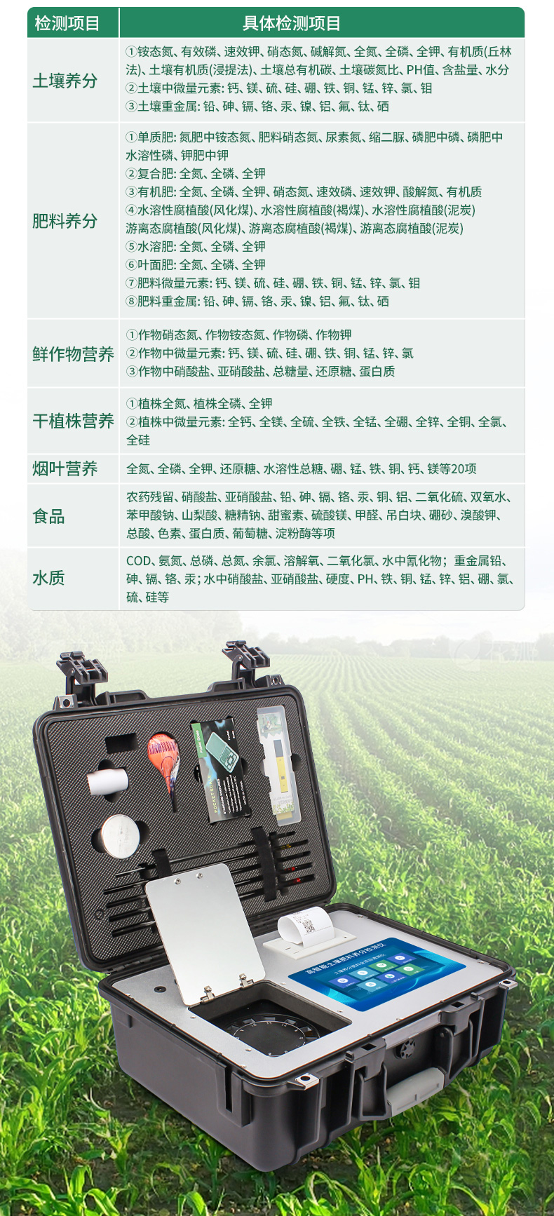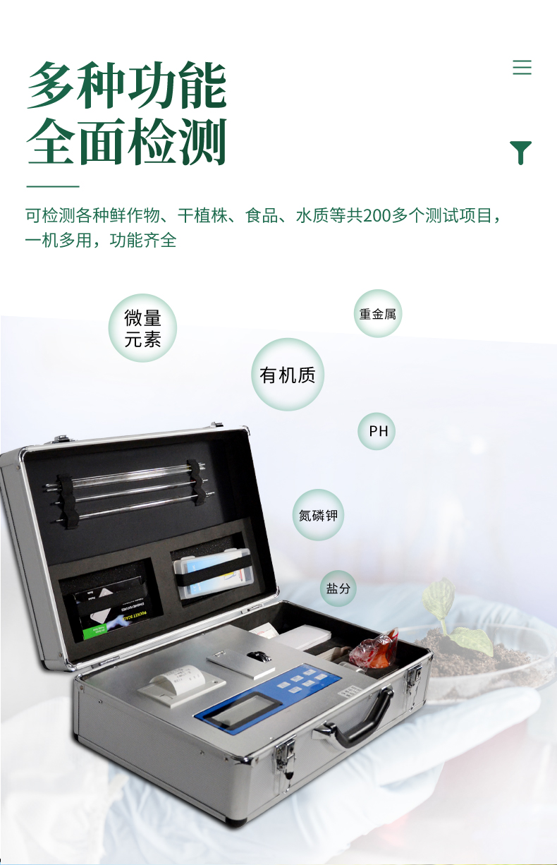 全項(xiàng)目土壤肥料養(yǎng)分速測(cè)儀功能全:測(cè)試項(xiàng)目國(guó)內(nèi)外最全(各類藥劑均可選購(gòu))。