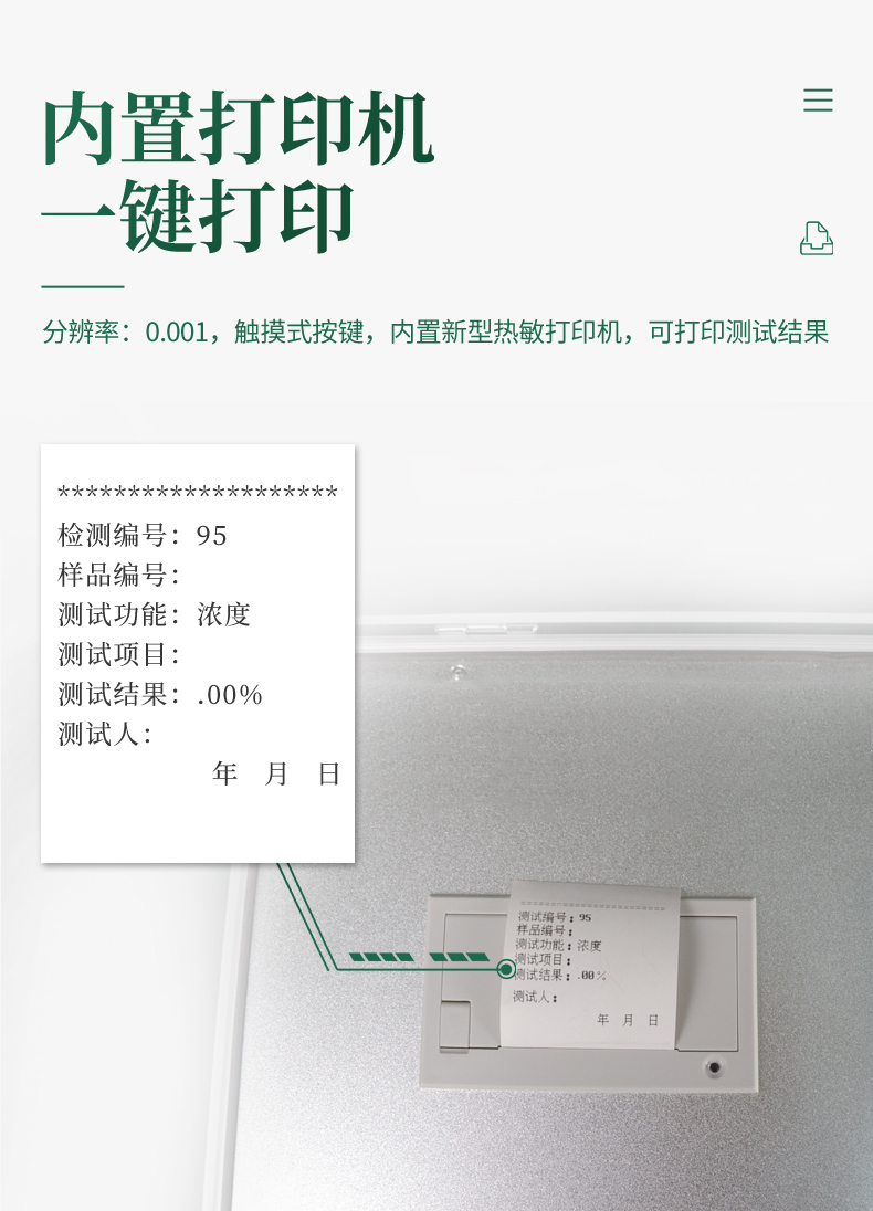 16.數(shù)據(jù)查詢打?。簻y(cè)試數(shù)據(jù)可存儲(chǔ)、查詢、打印,內(nèi)置新型一鍵式熱敏打印機(jī)