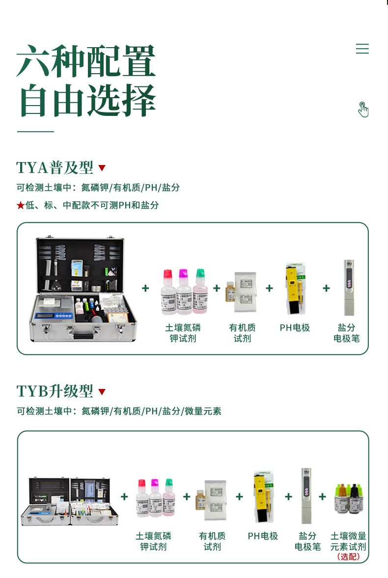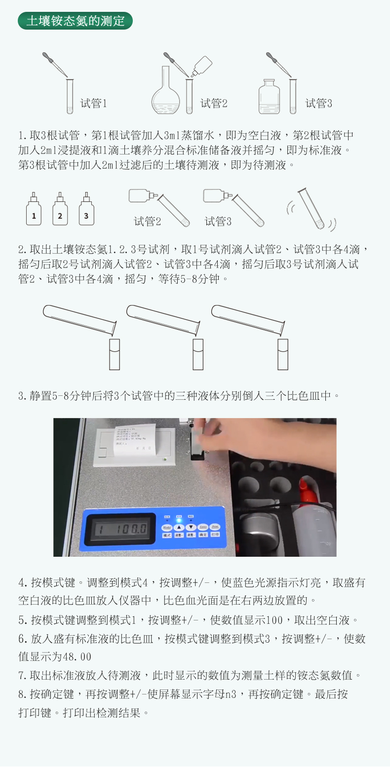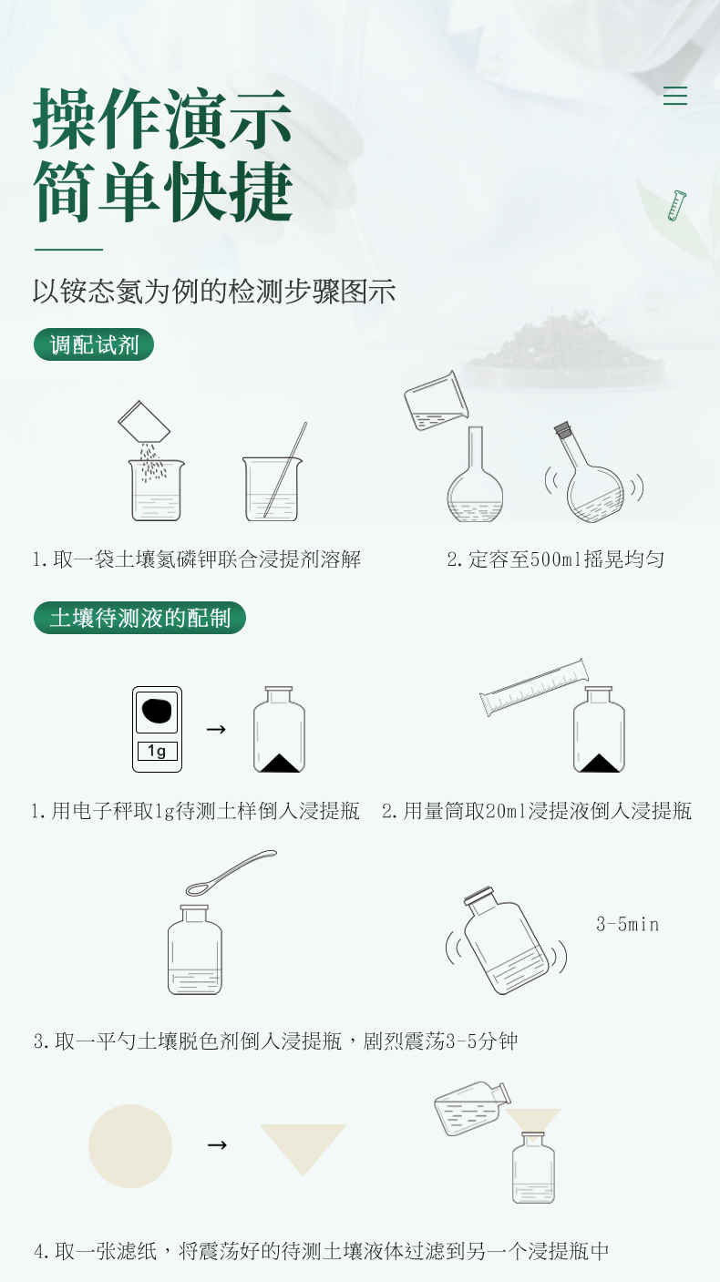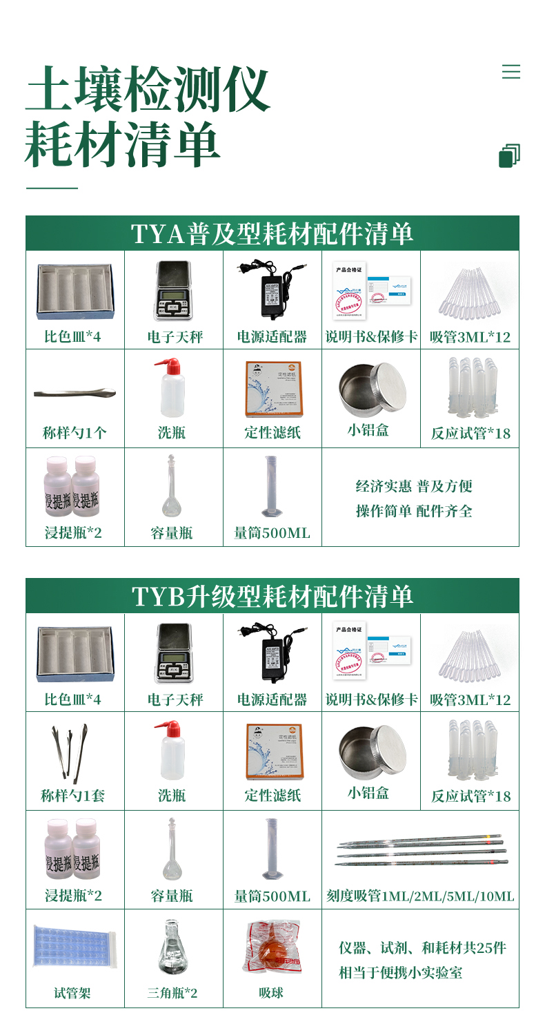 配套齊全:該儀器集藥、器、儀為一體,攜帶方便,相當(dāng)于一個(gè)小型實(shí)驗(yàn)室。適于農(nóng)業(yè)服務(wù)部門或農(nóng)資經(jīng)銷商、肥料廠商測(cè)土施肥和鑒別肥料真假。