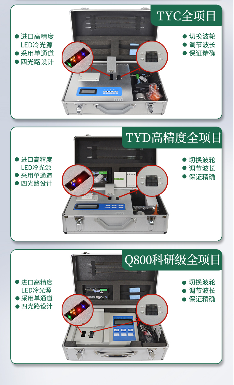 ★《機(jī)箱/藥劑一體式鋁合金機(jī)箱》設(shè)計(jì),便于攜帶、堅(jiān)固耐用,配套檢測(cè)方法及成品藥劑。