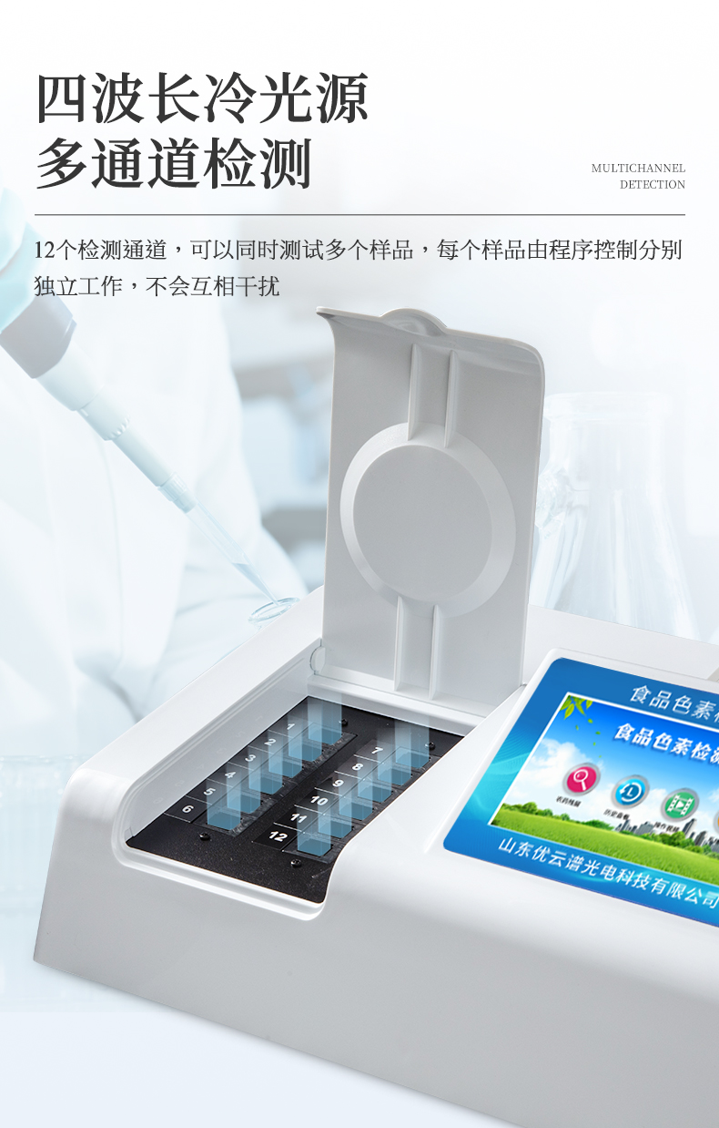 4、四波長冷光源,≥12個檢測通道,每個通道均配置410、520、590、630nm波長光源,標(biāo)配先進的光路切換裝置,專利光路切換功能可實現(xiàn)最多64波長,并且所有檢測項目可實現(xiàn)所有通道同時檢測。