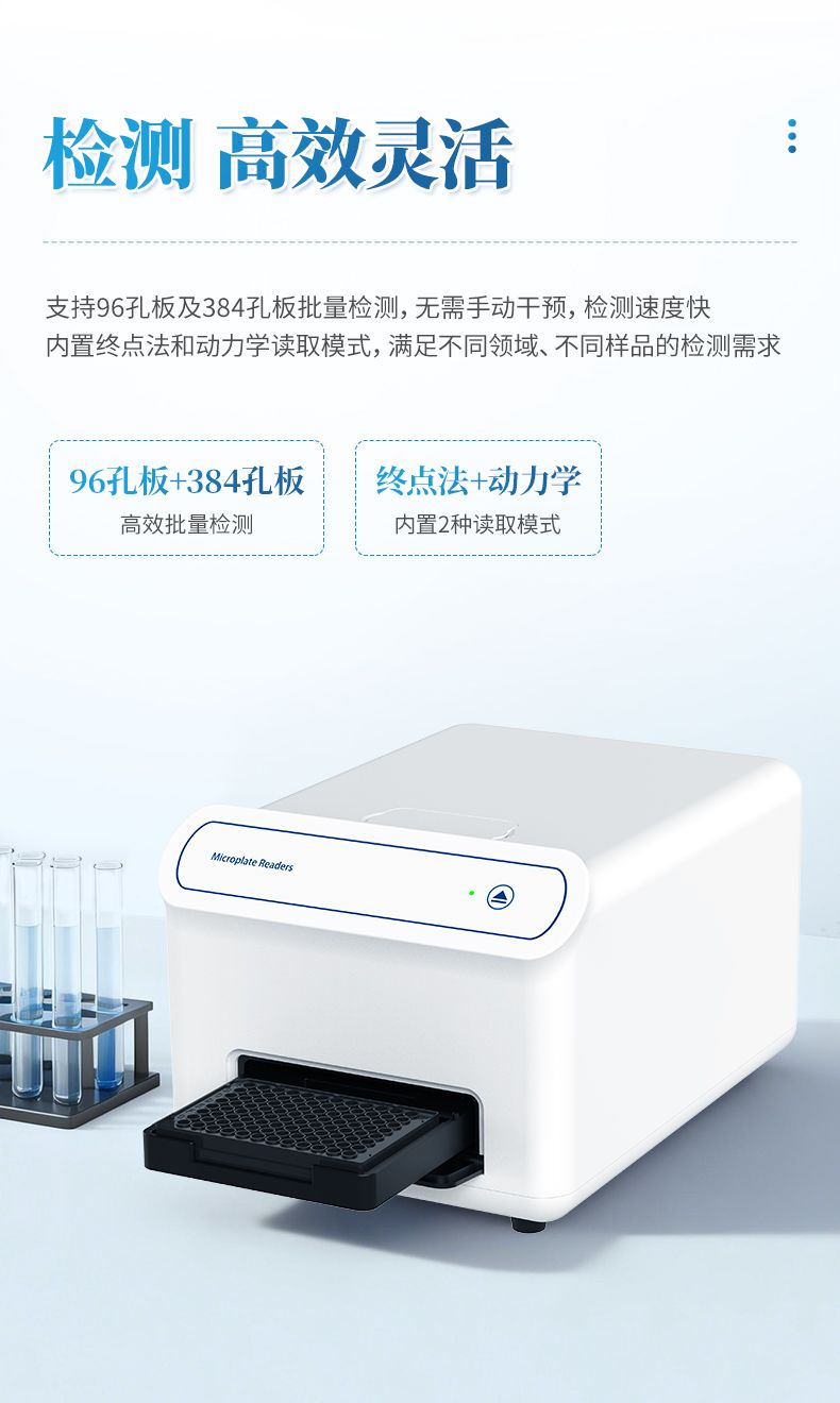 6.內(nèi)置終點(diǎn)法和動(dòng)力學(xué)讀取模式,靈活滿足不同領(lǐng)域、不同樣品的檢測需求;