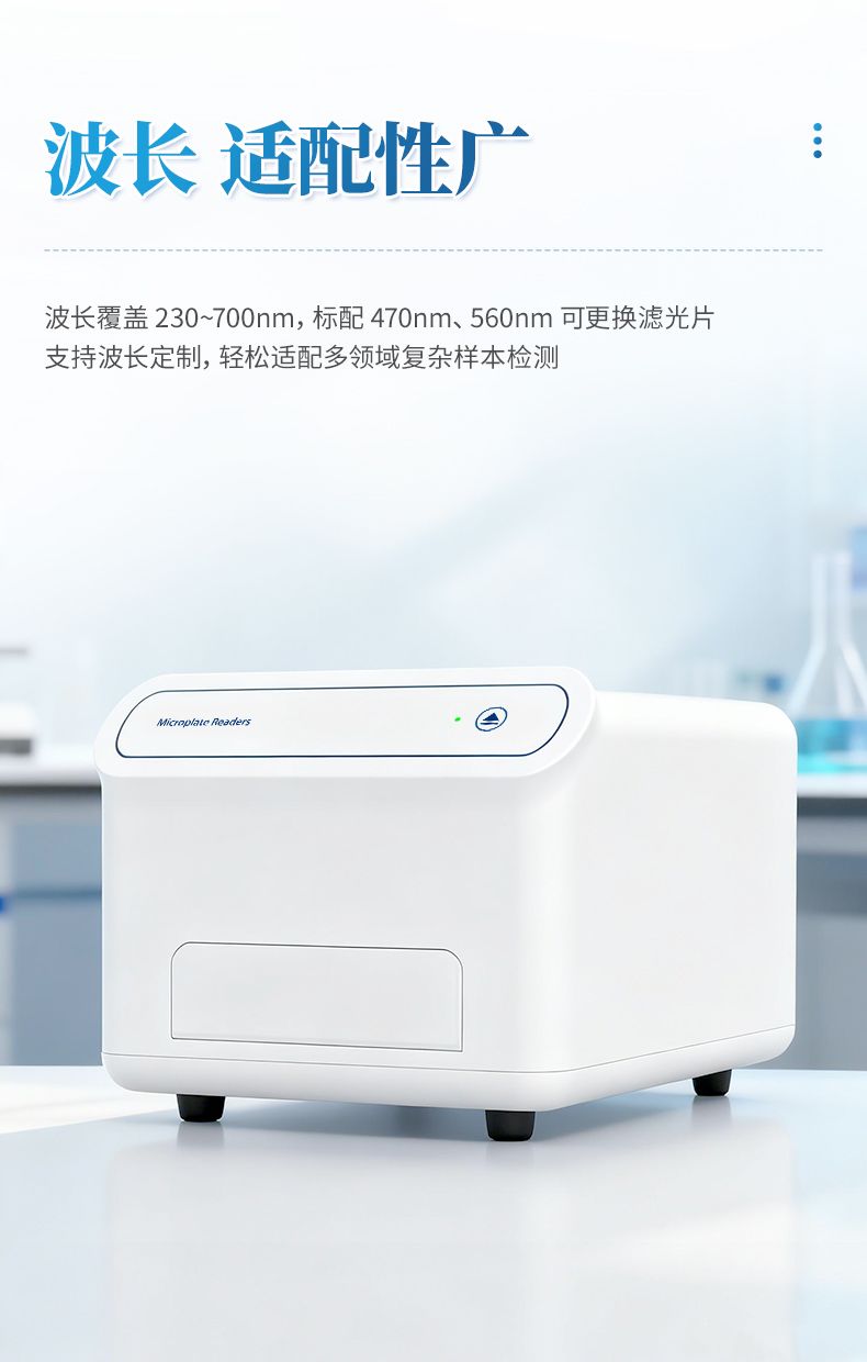 2*.波長覆蓋230-700nm,標(biāo)配470nm與560nm濾光片更換模塊,用戶可根據(jù)需求自行更換,支持波長定制,適配多場景復(fù)雜樣本檢測需求;