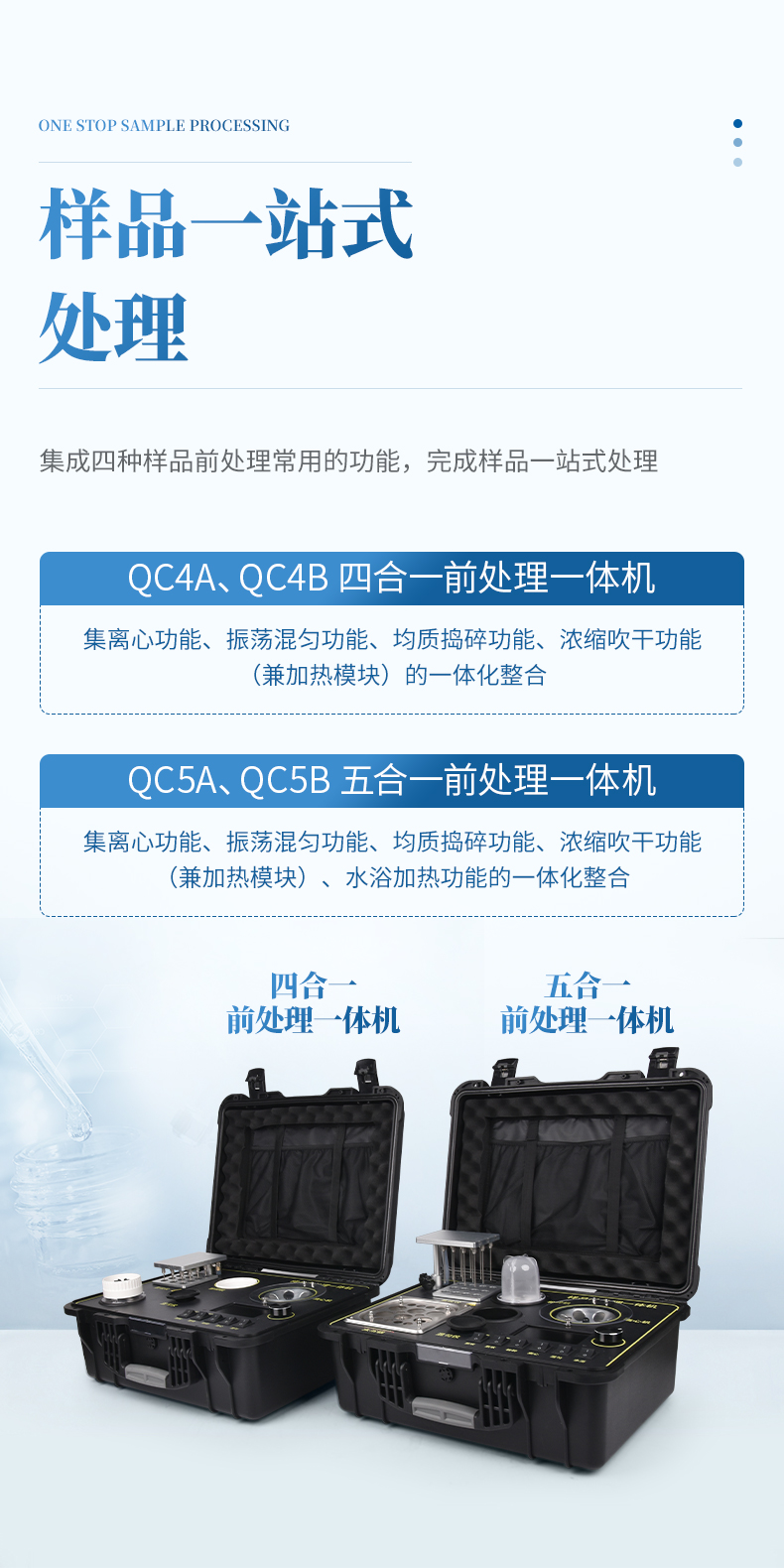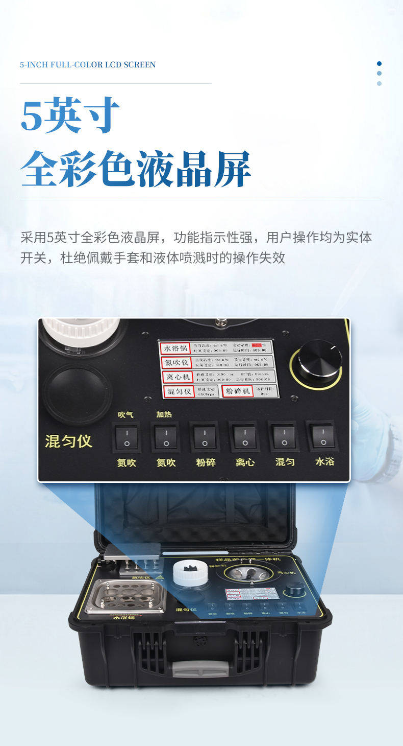 1、功能緊湊,集成四種樣品前處理常用的功能,完成樣品一站式處理。