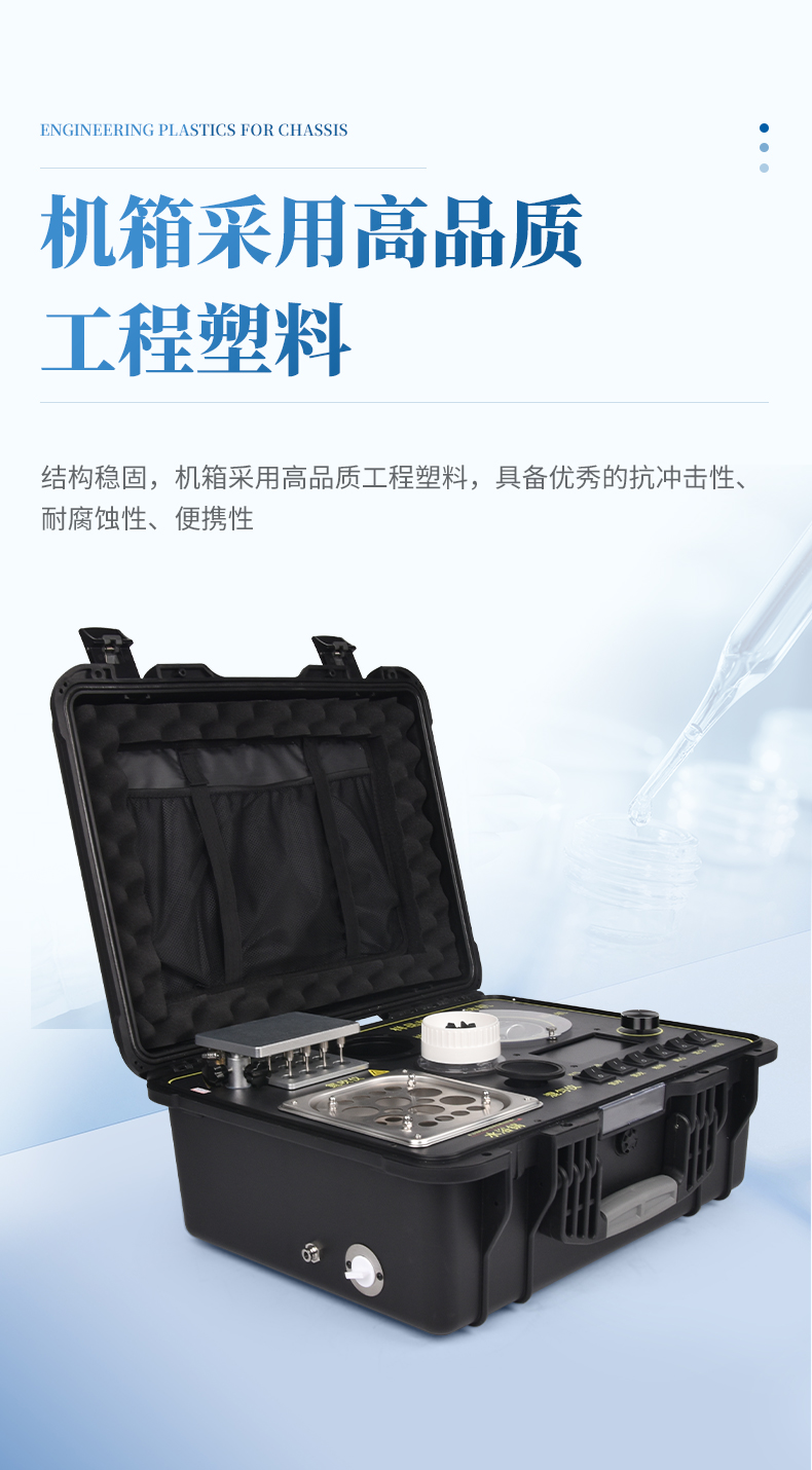 2、結(jié)構(gòu)穩(wěn)固,機(jī)箱采用高品質(zhì)工程塑料,具備優(yōu)秀的抗沖擊性、耐腐蝕性、便攜性。