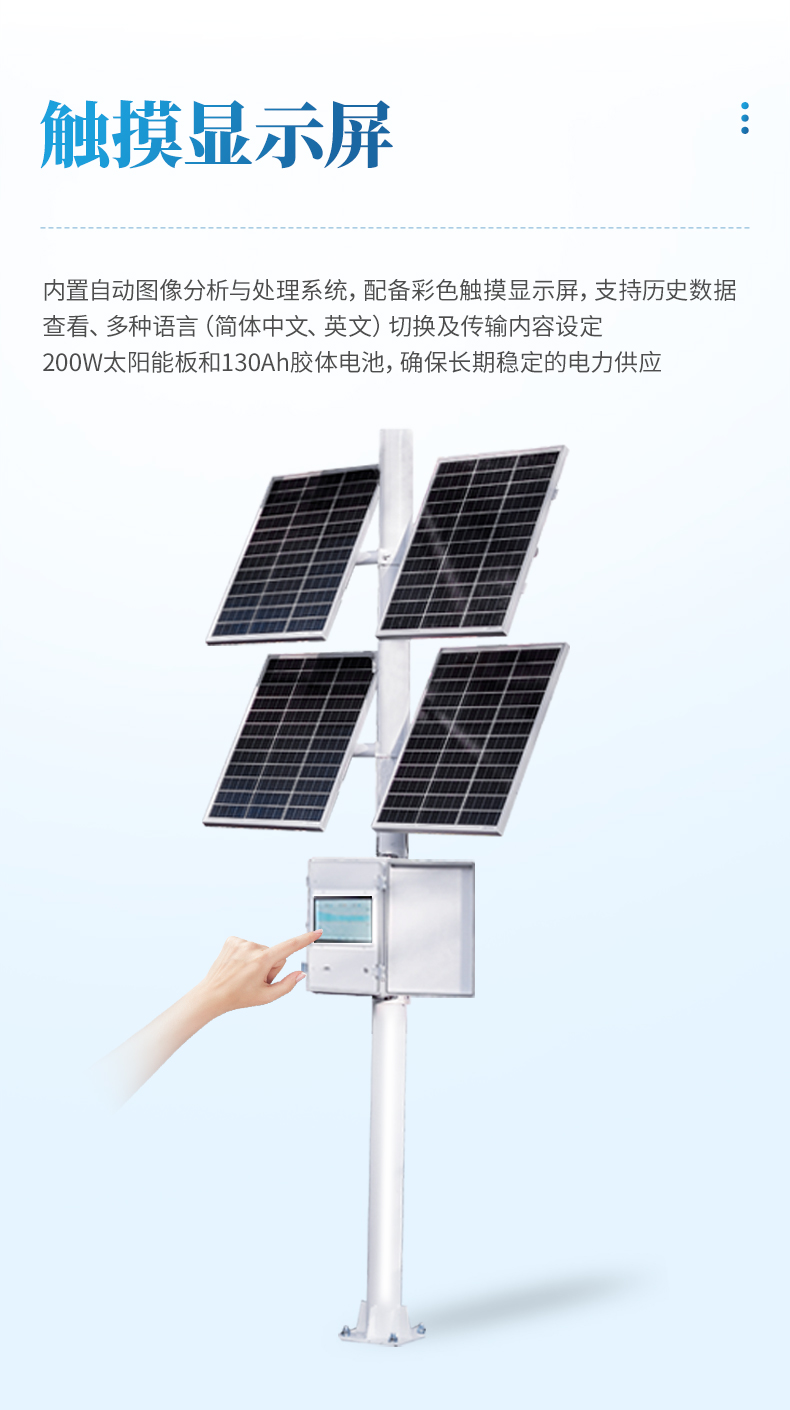 太陽能系統(tǒng): 包括200W太陽能板和130Ah膠體電池,確保長期穩(wěn)定的電力供應(yīng)