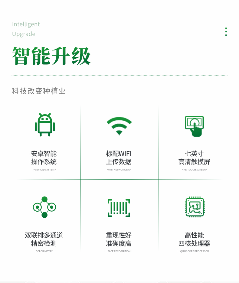 測一個植株樣品(N、P、K)≤40分鐘,同時檢測三個植株樣品(N、P、K)≤1個小時。