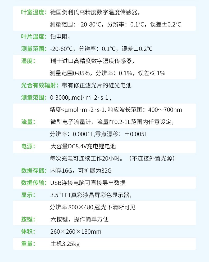 零點漂移:±0.005L,氣泵流量可根據需要設定,可測量不同氣體流量下對光合作用的影響,氣體流量穩(wěn)定。