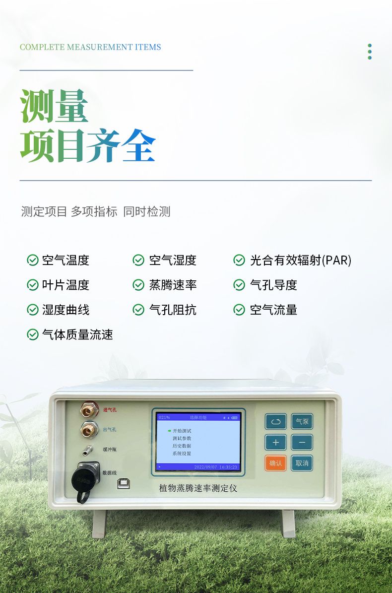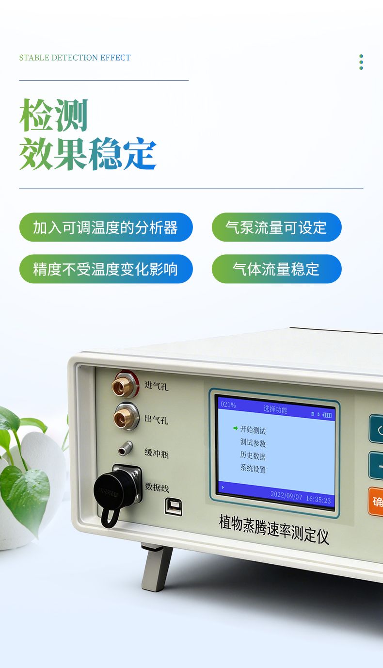 原理:將葉面置于開放葉室中,讓大氣以一定流速進入葉室,分別測量進出葉室的氣體濕度,然后通過進出葉室的氣體濕度差值來計算出蒸騰速率。