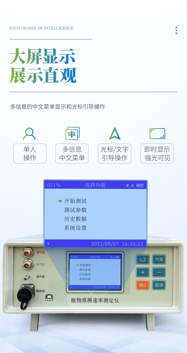 植物蒸騰速率測定儀是一款采用開閉路兩種測量方式的科研型儀器。用來測量各種因素對葉片氣孔行為的影響,可方便、重復、準確地計算出氣孔阻抗、氣孔導度和蒸騰速率,還可測得空氣溫濕度,葉面溫度,光合有效輻射。廣泛的應用于植物葉片的水分生理研究,農作物水分利用、水分脅迫危害、生物化控調節(jié)效果等研究。
