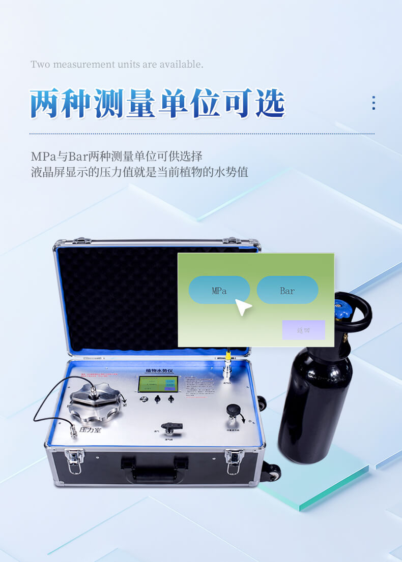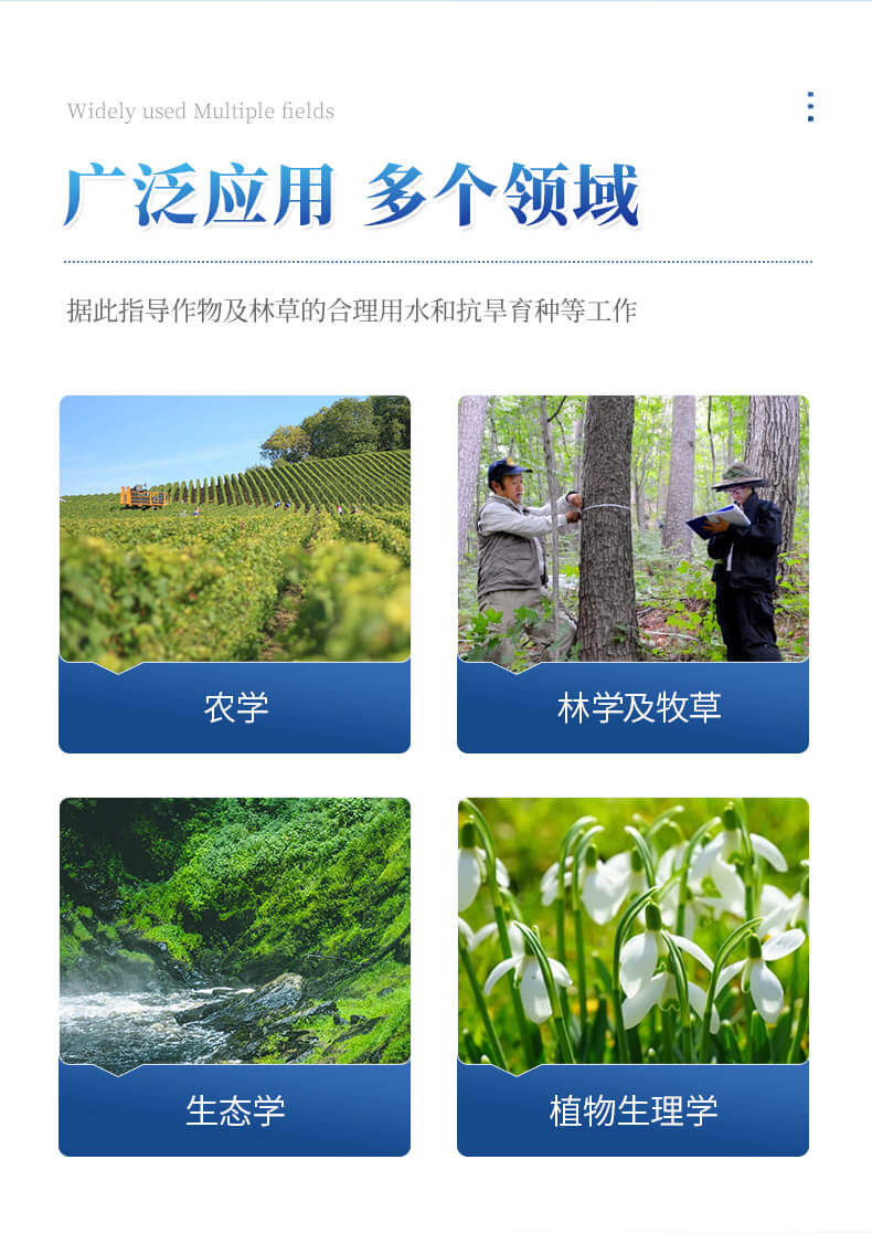 植物水勢測定儀,是用于測定植物水分狀況和它的組成成分及壓去木質(zhì)部位導管汁液提供成分分析用的一種分析儀器。可以利用此儀器研究植物的水分關系和植物與環(huán)境的關系。植物水勢測定儀適用于植物生理學、生態(tài)學、農(nóng)學、林學及牧草等的研究。據(jù)此指導作物及林草的合理用水和抗旱育種等工作,是從事農(nóng)林教學和科研工作的重要儀器。該儀器操作簡便,檢測快速,同時適用于室內(nèi)和室外及野外測量。