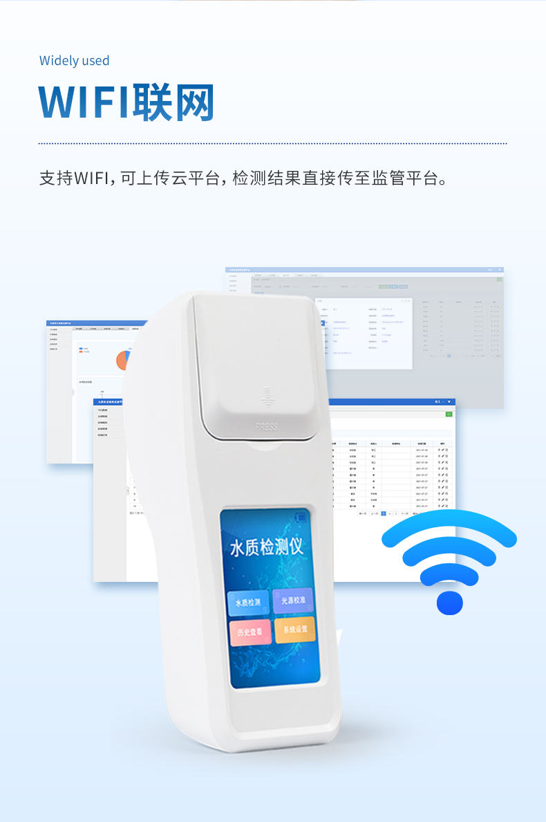②配置云監(jiān)控平臺(tái),檢測結(jié)果可直接無線傳至平臺(tái),進(jìn)行水質(zhì)長短期分析,輔助管理。