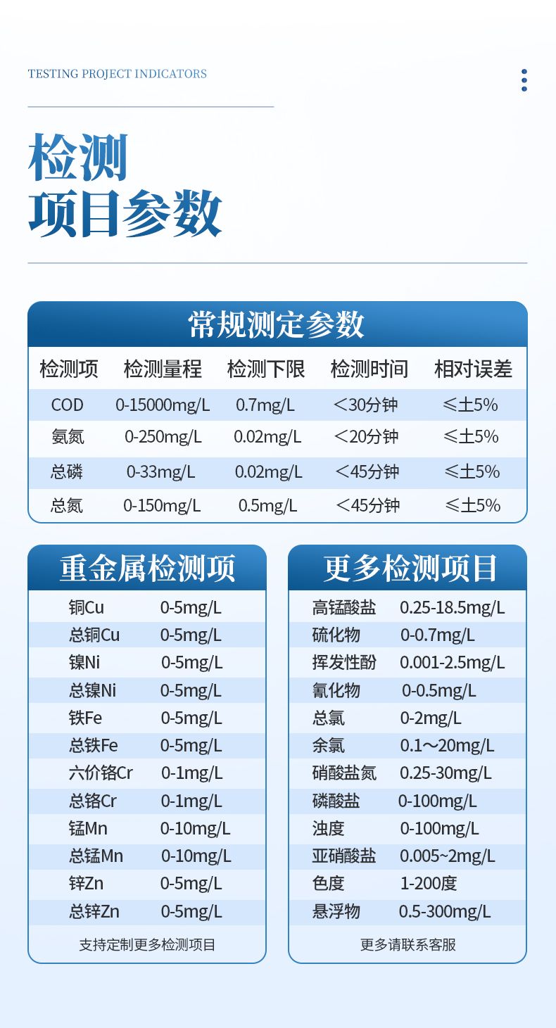 檢測方法:水質化學需氧量快速檢測法;