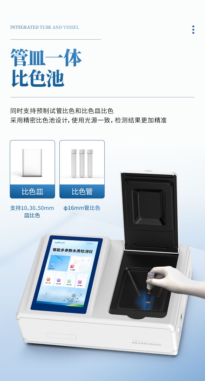 3、采用精密比色池設計,使用光源一致,可以解決由于光源誤差帶來的檢測結果誤差問題,檢測結果更加精準。