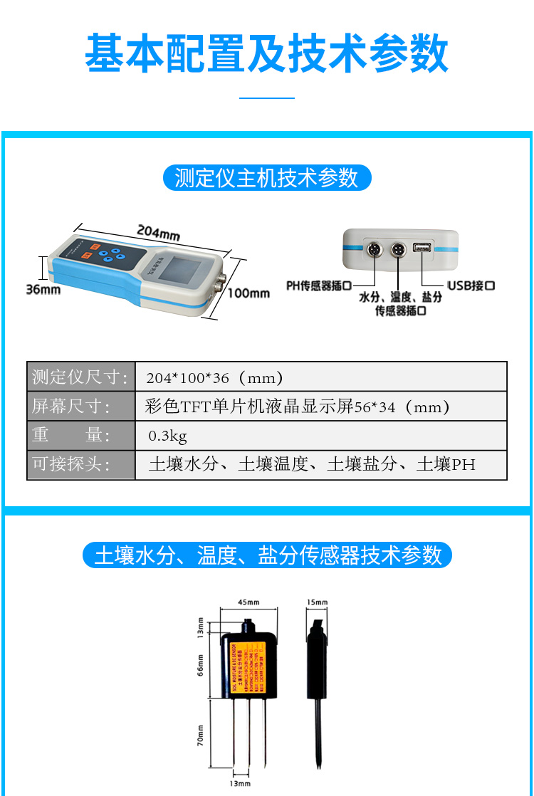 土壤鹽分范圍:0-20ms 測(cè)量精度:±2% 分辨率:±0.1ms
