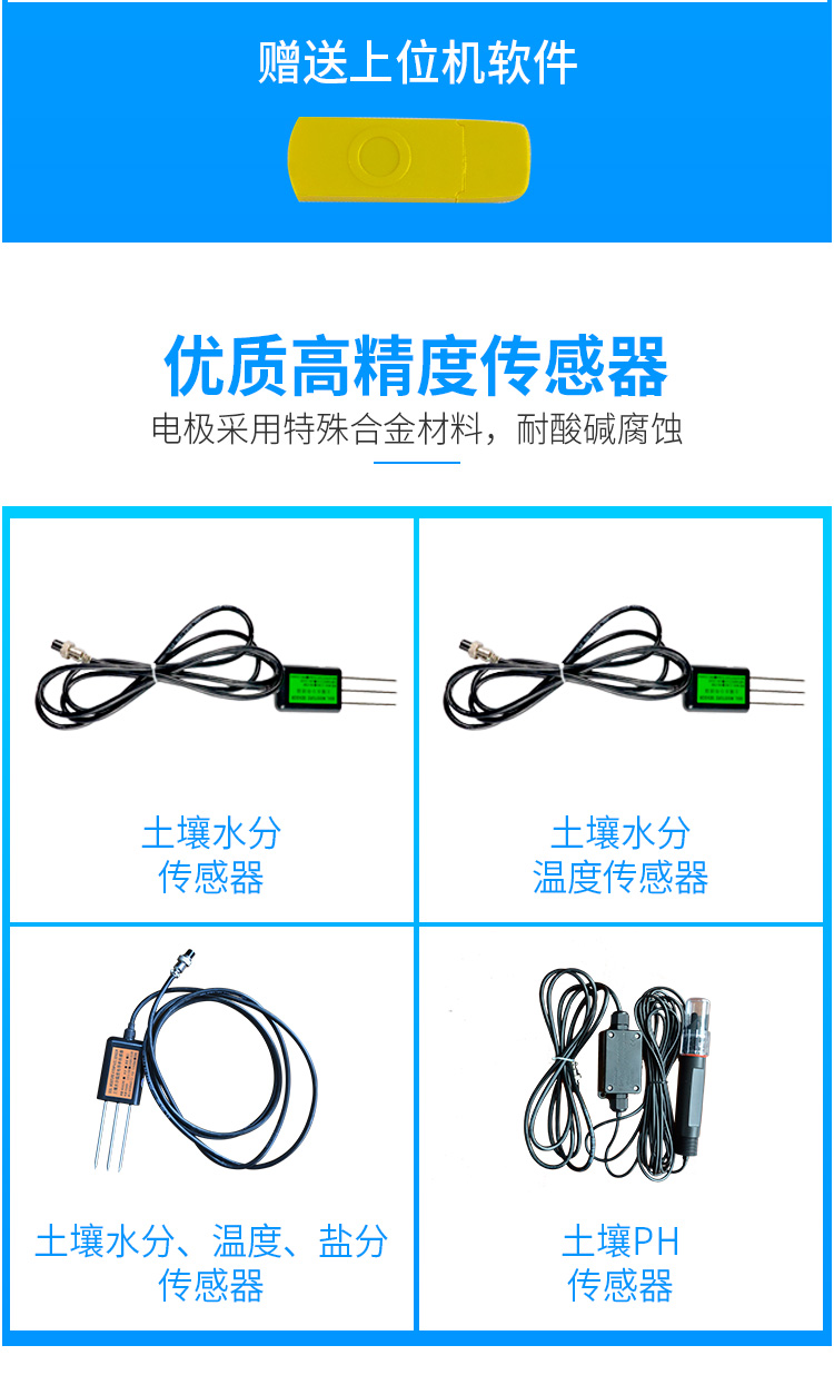 集成電極:土壤水分,土壤溫度,土壤鹽分三合一,集成到一個(gè)傳感器;