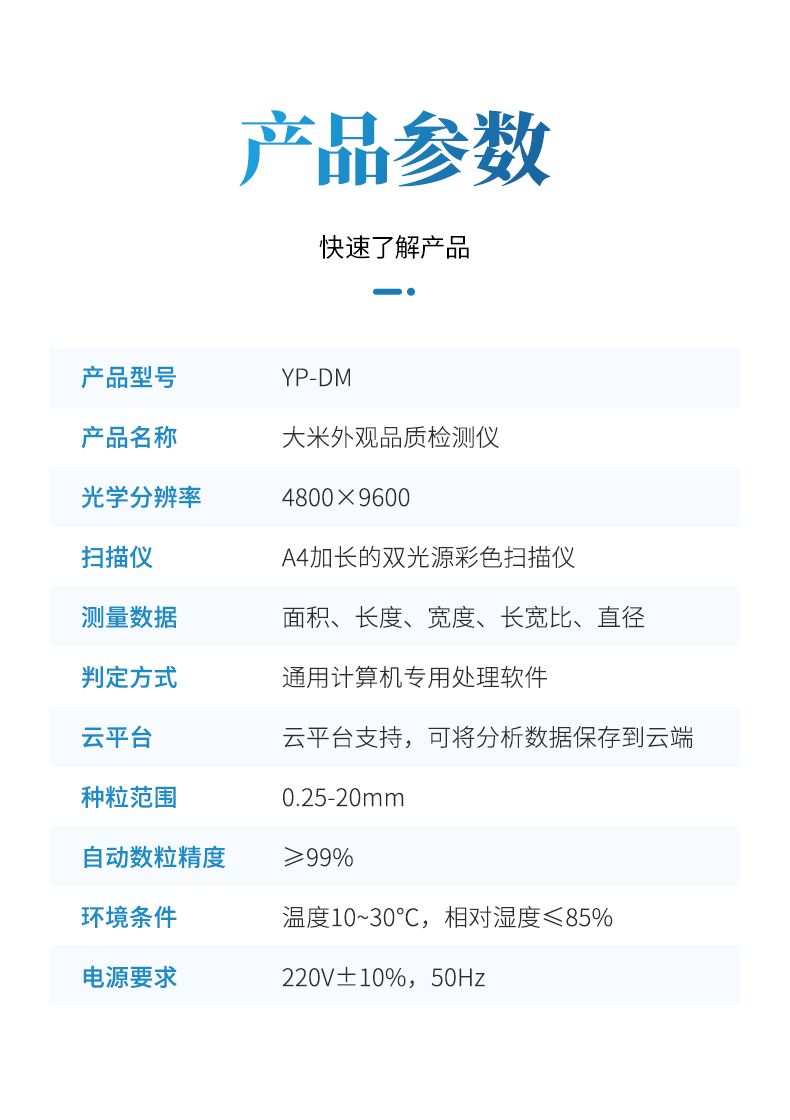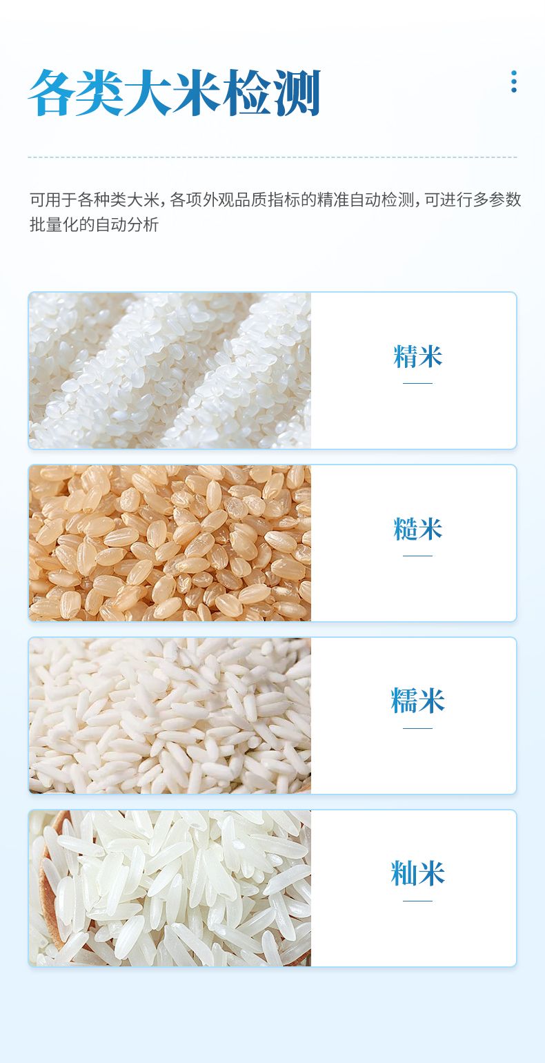 大米外觀品質(zhì)檢測儀可自動測量每粒的面積、長徑、短徑、長寬比、圓度、等效直徑。可用于各種類大米(精米、糙米、糯米等)各項外觀品質(zhì)指標的精準自動檢測,可進行多參數(shù)、批量化的自動分析