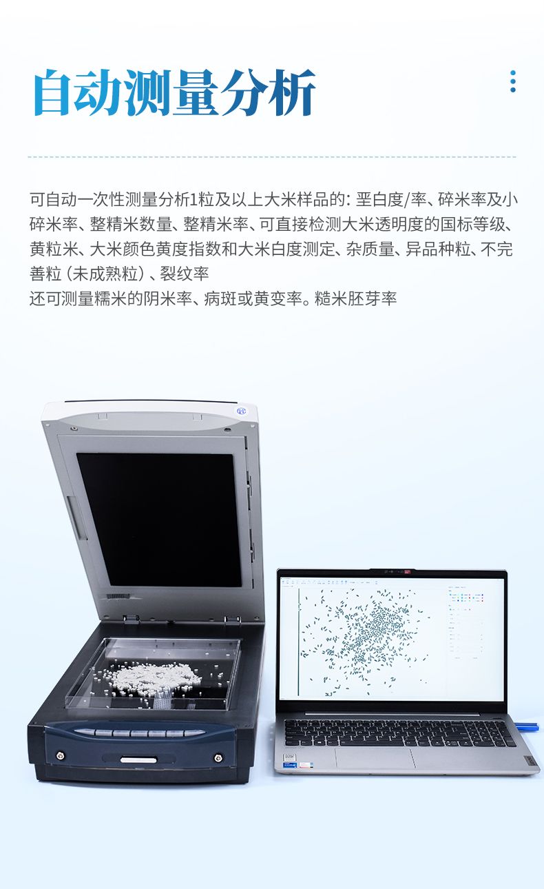 2、★可自動一次性測量分析30g以上大米樣品的:堊白度/率、碎米率及小碎米率、整精米數(shù)量、整精米率、可直接檢測大米透明度的國標等級、黃粒米、大米顏色黃度指數(shù)和大米白度測定、雜質(zhì)量、異品種粒、不完善粒(未成熟粒),及糯米的陰米率、病斑或黃變率。還可自動分析大米的裂紋率,糙米胚芽率。
