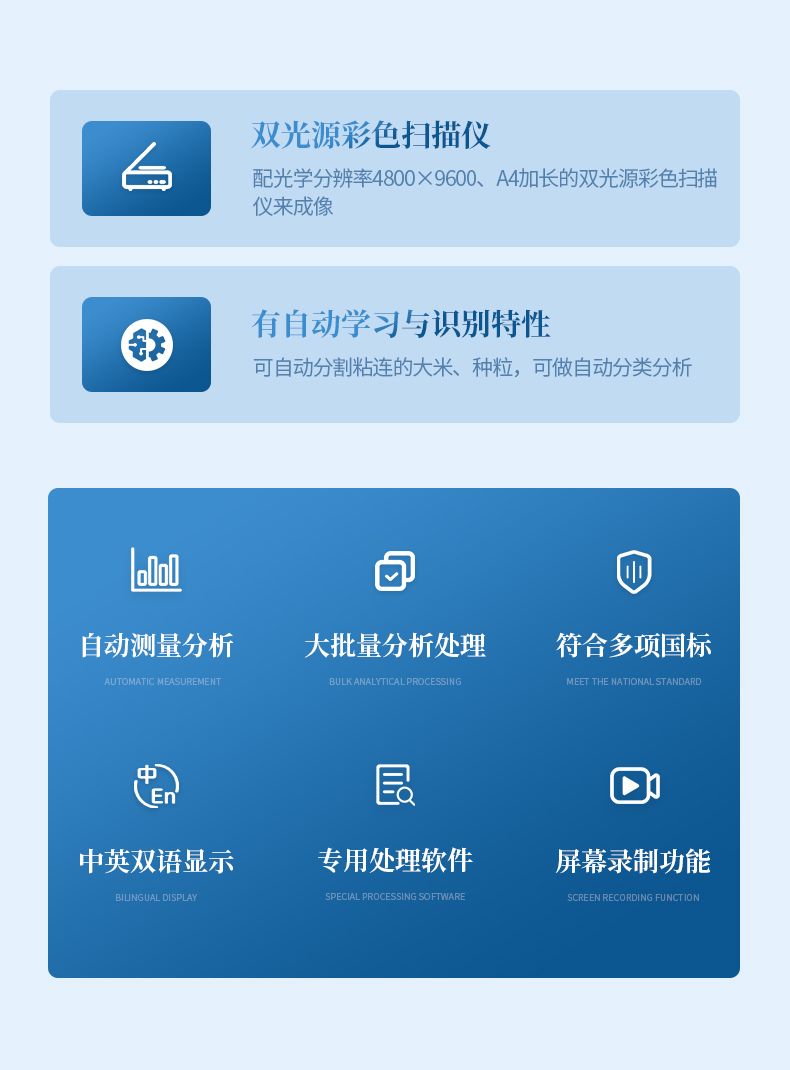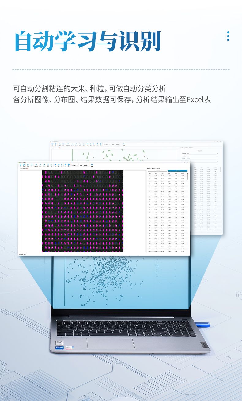 14、具有自動學(xué)習(xí)與識別特性,可自動分割粘連的大米、種粒,可做自動分類分析。