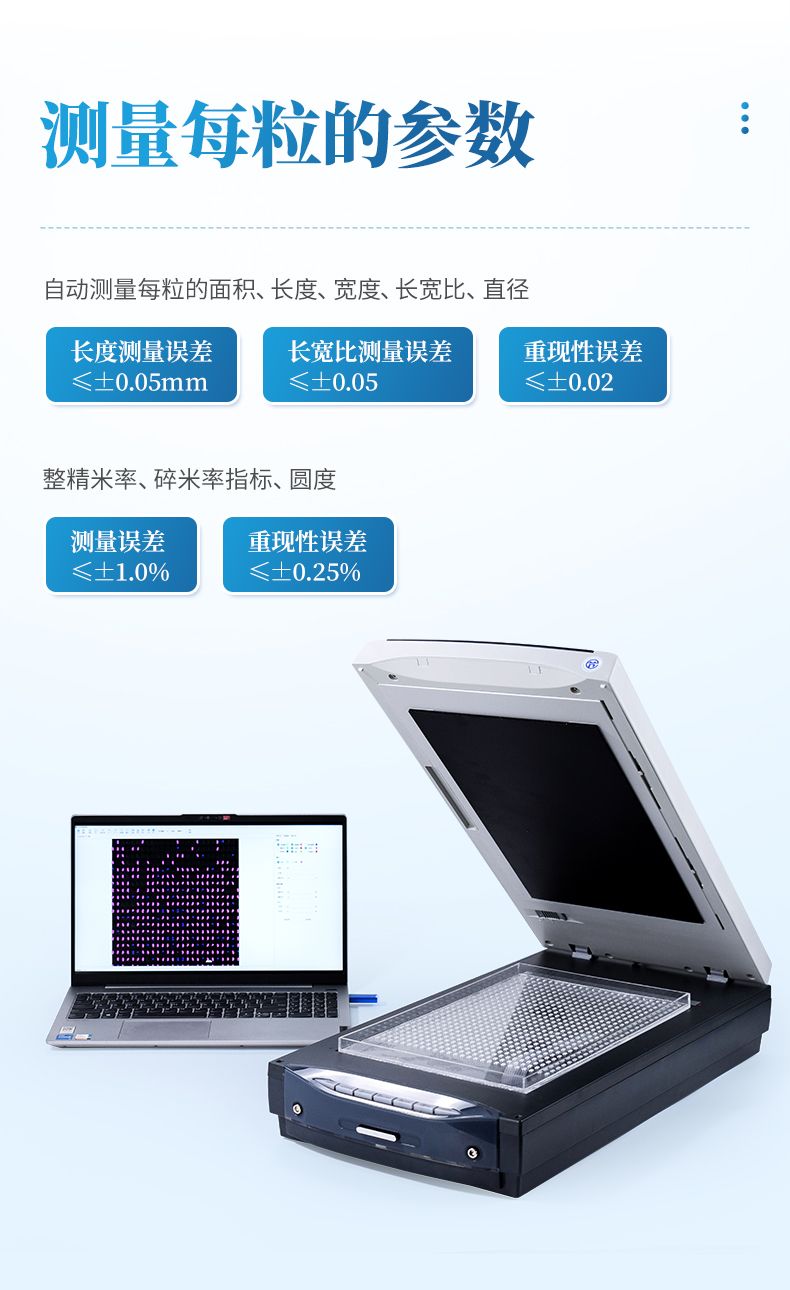 長度測量誤差≤±0.05mm,長寬比測量誤差≤±0.05,重現(xiàn)性誤差≤±0.02