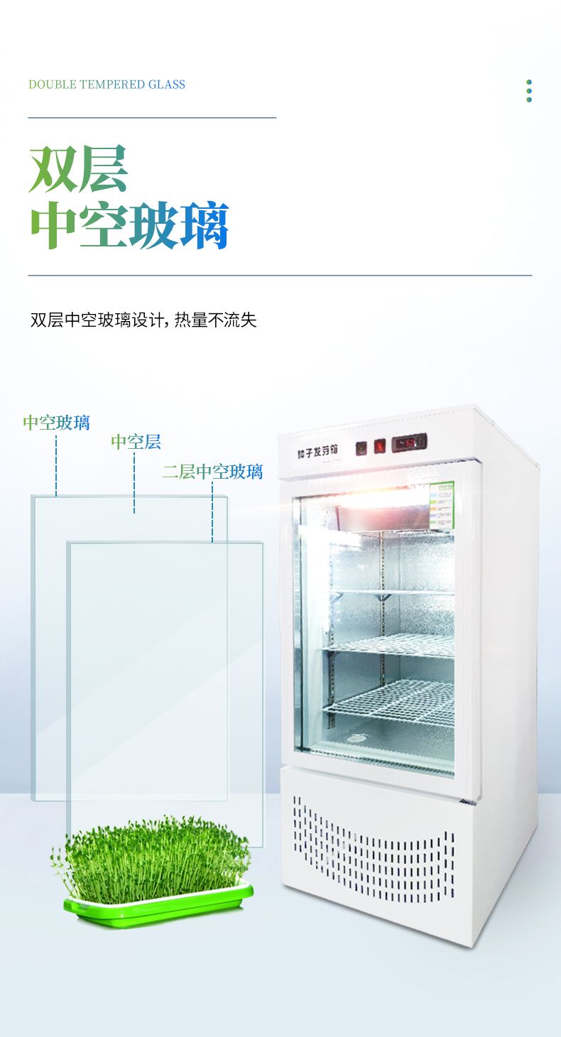 2、此箱可在不同地區(qū)不同季節(jié)使用不同的種子恒溫快速發(fā)芽,由于恒溫的作用,使種子的蛋白酶等化學物質(zhì)迅速分解反應,避免了溫差出芽造成的能量丟失,使種子出芽后抗病力強,提高幼苗免疫能力,縮短了種子的出芽的時間。經(jīng)該器械出的幼芽,芽苗質(zhì)量好,成活率高。