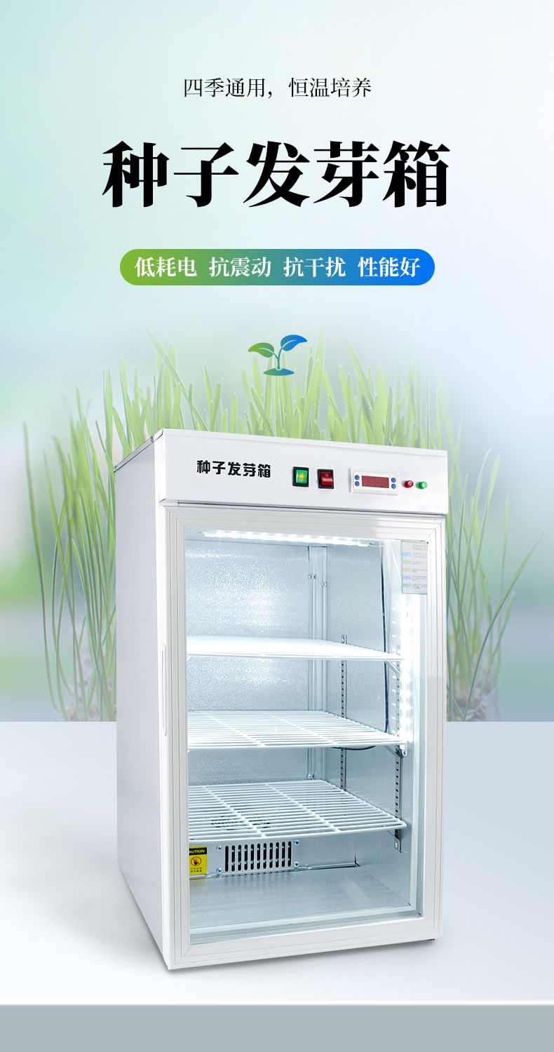 2、此箱可在不同地區(qū)不同季節(jié)使用不同的種子恒溫快速發(fā)芽,由于恒溫的作用,使種子的蛋白酶等化學(xué)物質(zhì)迅速分解反應(yīng),避免了溫差出芽造成的能量丟失,使種子出芽后抗病力強(qiáng),提高幼苗免疫能力,縮短了種子的出芽的時(shí)間。經(jīng)該器械出的幼芽,芽苗質(zhì)量好,成活率高。