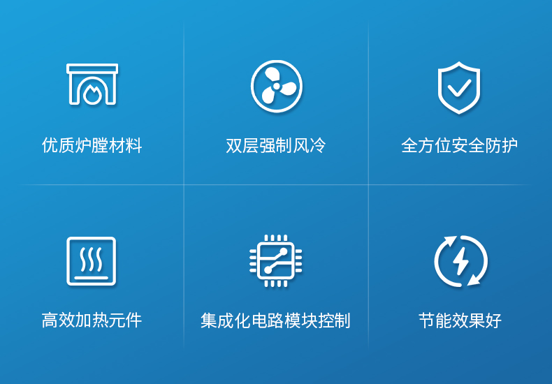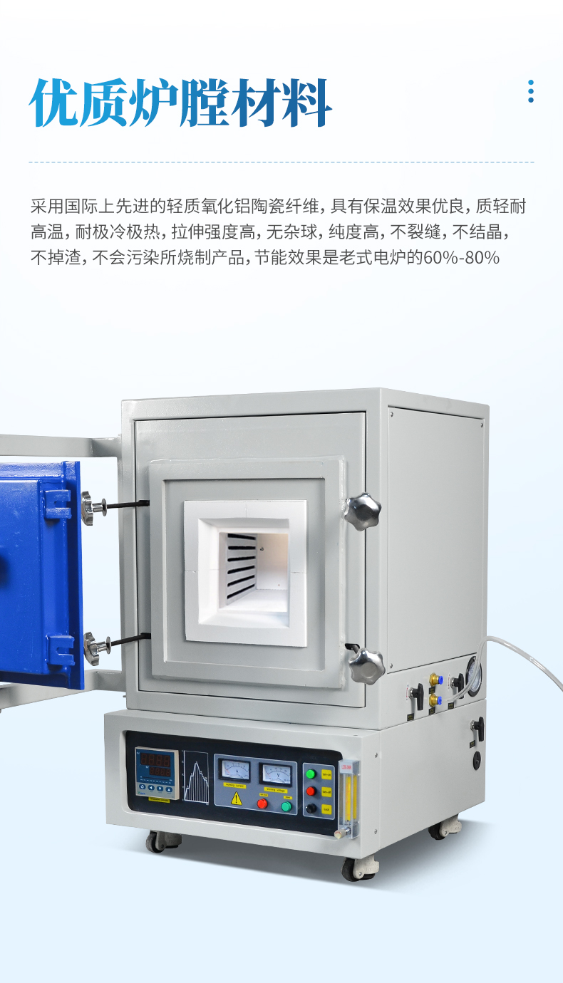 1、爐膛采用優(yōu)質(zhì)氧化鋁纖維材料,保溫性能好,耐用,拉伸強度高,無雜球,純度高,節(jié)能效果明顯;