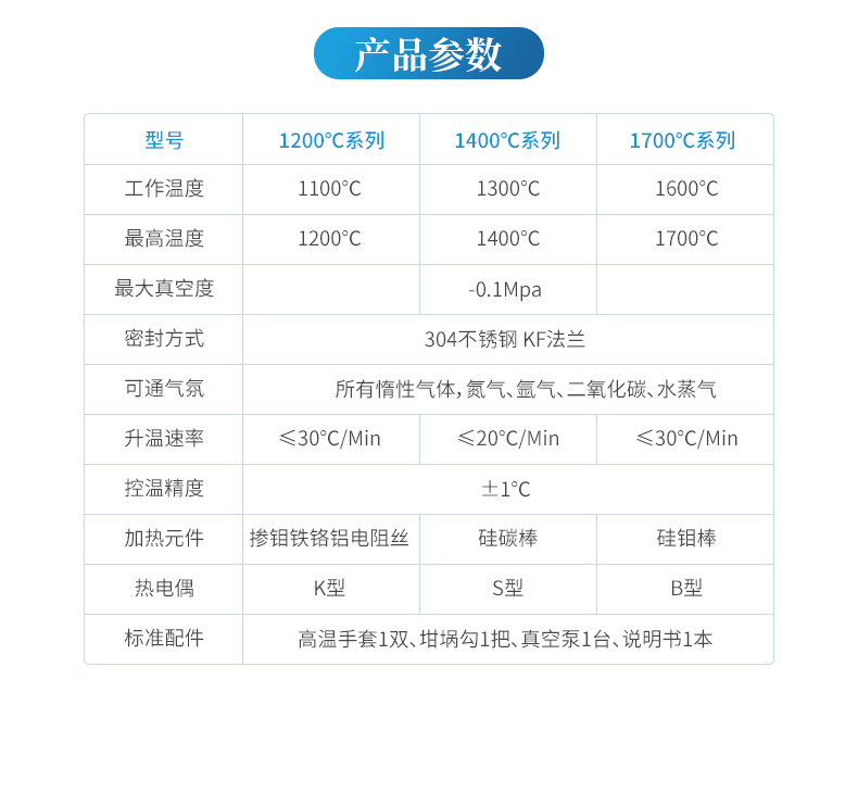 | 可通氣氛 | 所有惰性氣體,氮氣、氬氣、二氧化碳、水蒸氣 |