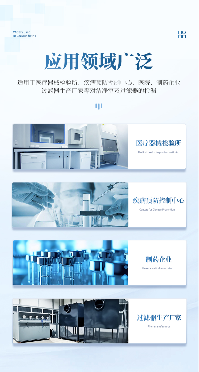 氣溶膠發(fā)生器是利用Laskin噴嘴產(chǎn)生DOP氣溶膠的儀器,內(nèi)置調(diào)節(jié)閥可調(diào)節(jié)使用4個(gè)或10個(gè)噴嘴工作,輸出的氣溶膠濃度在1.4m3/min-56.6m3/min空氣流量下,可以達(dá)到10μg/L-100μg/L,氣溶膠性能指標(biāo)符合國家標(biāo)準(zhǔn),適用于醫(yī)療器械檢驗(yàn)所、疾病預(yù)防控制中心、醫(yī)院、制藥企業(yè)、過濾器生產(chǎn)廠家等對潔凈室及過濾器的檢漏。