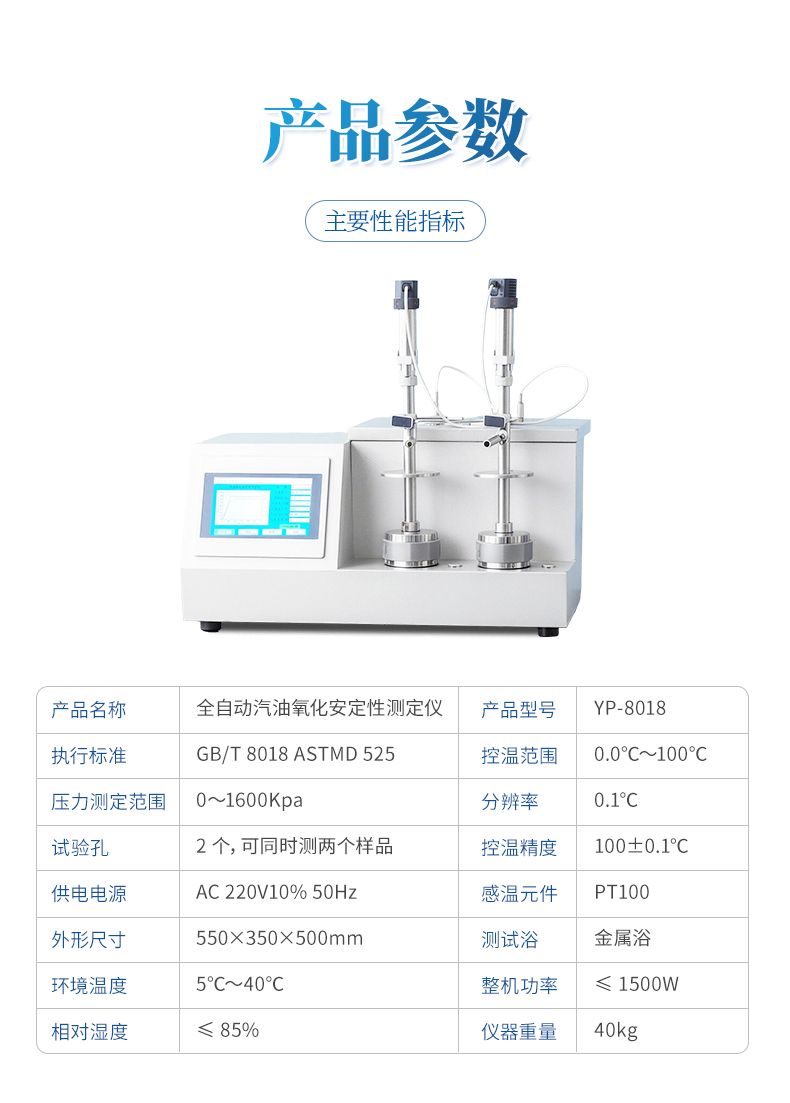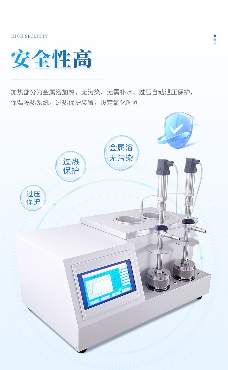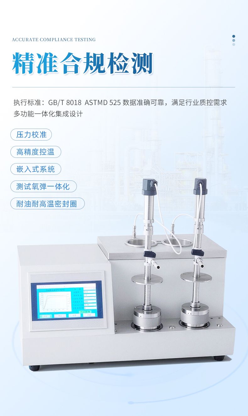 (5)儀器具有設(shè)定氧化時(shí)間功能,根據(jù)國家標(biāo)準(zhǔn)如果樣品出現(xiàn)緩慢氧化,到達(dá)設(shè)定時(shí)間后,儀器自動(dòng)計(jì)算出該時(shí)間下的最高到最低壓力降,作為實(shí)驗(yàn)數(shù)據(jù)。