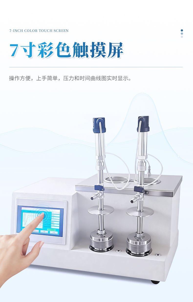 (1)儀器采用7寸彩色液晶觸摸屏,壓力和時(shí)間曲線圖實(shí)時(shí)顯示。