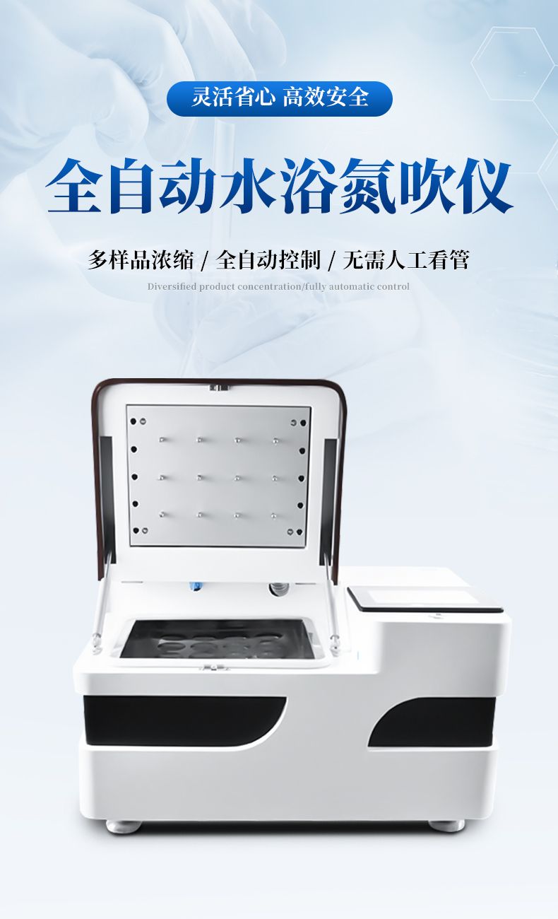 全自動氮氣濃縮儀在大量的分析工作尤其是在環(huán)境污染物、食品安全分析領(lǐng)域中,為了獲得痕量的目標組分,都需對備檢樣品進行預(yù)處理,其過程主要包括有樣品提?。ㄝ腿。?、濃縮、凈化及再濃縮等基本步驟,其中如何快速無損的濃縮也是關(guān)鍵的一環(huán)。完成濃縮過程的常用裝置包括旋轉(zhuǎn)蒸發(fā)儀、K-D濃縮器和氮氣吹掃(簡稱氮吹儀)等,其中以氮吹濃縮簡單,它不需要特別的裝置設(shè)計,當(dāng)樣品數(shù)量不多或溶劑量較小時,采用該法方便。當(dāng)同時需要濃縮大批量樣品且溶劑量多時,以上各濃縮裝置就顯得力不從心,濃縮過程顯得費時、費力(需要看管,以防吹干)且開放式的氮吹裝置對操作人員身體健康不利。