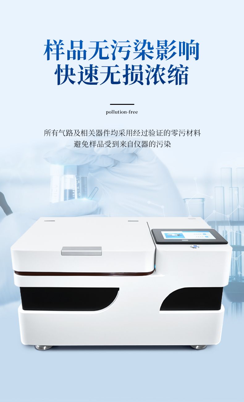 該設(shè)備采用獨特的濃縮方式大幅提高濃縮速率。同時,設(shè)備利用自帶抽氣風(fēng)扇將蒸發(fā)之廢氣由排氣管路定向排出,使得原本必須置于通風(fēng)廚中的氮吹濃縮裝置可安全的安裝于一般實驗平臺上。不僅移動容易,節(jié)約實驗室成本,而且減輕了有毒有害溶劑對操作人員的傷害。是實驗室樣品前處理裝置。