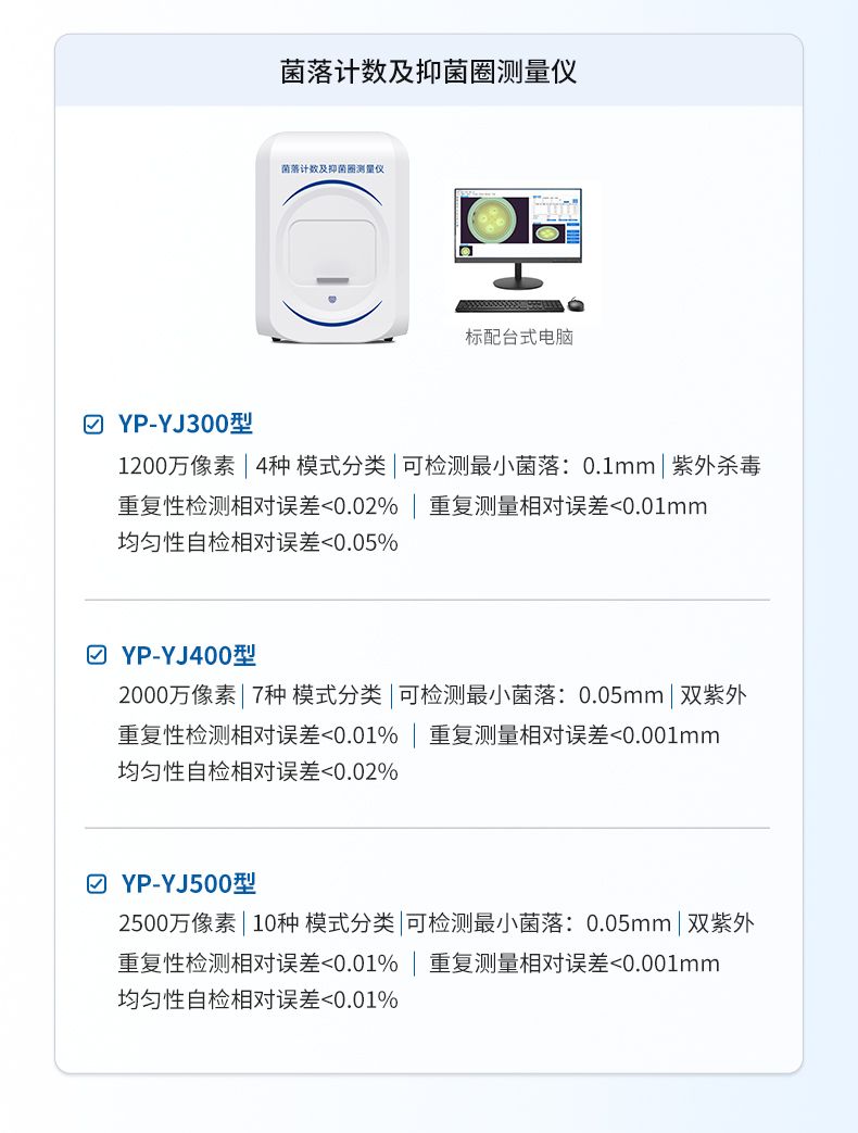本產(chǎn)品是一款集圖像采集、數(shù)據(jù)處理與統(tǒng)計于一體的自動菌落計數(shù),廣泛應(yīng)用于食品、藥品、化妝品、環(huán)境監(jiān)測、醫(yī)療衛(wèi)生、科研院校等領(lǐng)域的菌落計數(shù)。該儀器采用先進的數(shù)字圖像處理技術(shù),具備熒光菌識別和殺菌功能,可實現(xiàn)對培養(yǎng)皿中菌落的快速、準(zhǔn)確、全自動計數(shù),顯著提升實驗效率,降低人工誤差。
