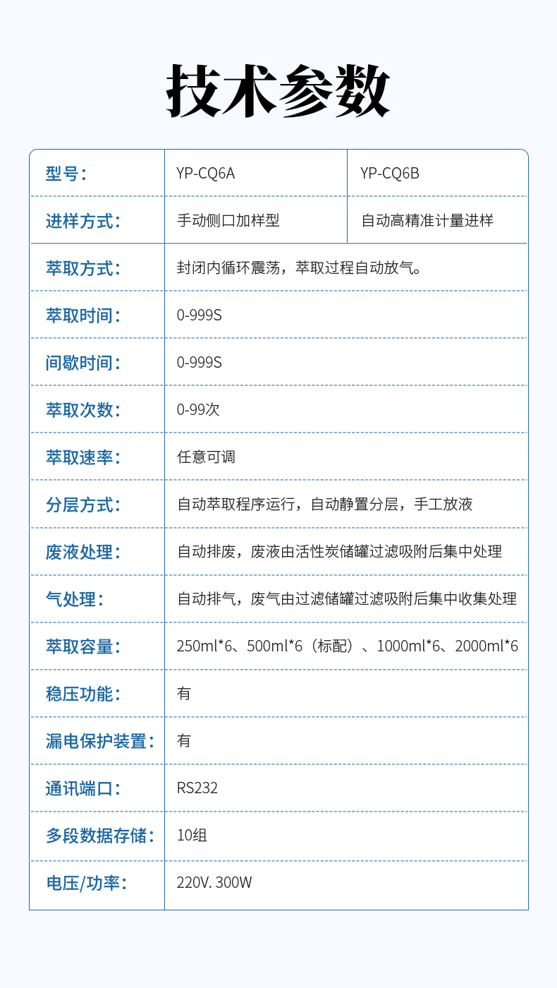 9. 萃取容量:250ml*6、500ml*6(標(biāo)配)、1000ml*6、2000ml*6