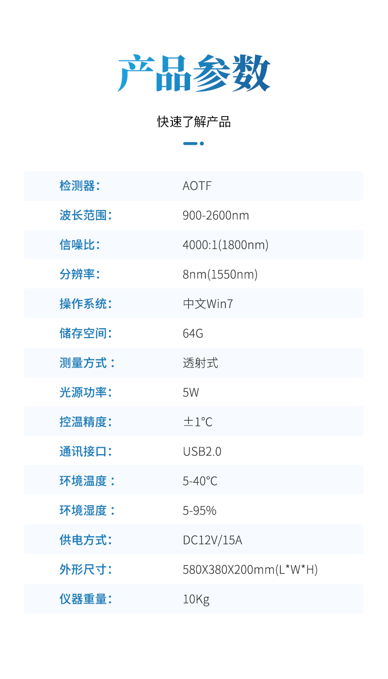 采用新型的AOTF 聲光可調(diào)檢測技術(shù),整機(jī)設(shè)計 小巧緊湊,安裝快捷,操作簡單,配有外置熔樣和內(nèi)置恒溫裝置,進(jìn)行快速 無損的定量檢測,在化工、制藥、軍工等行業(yè)有著廣泛應(yīng)用。