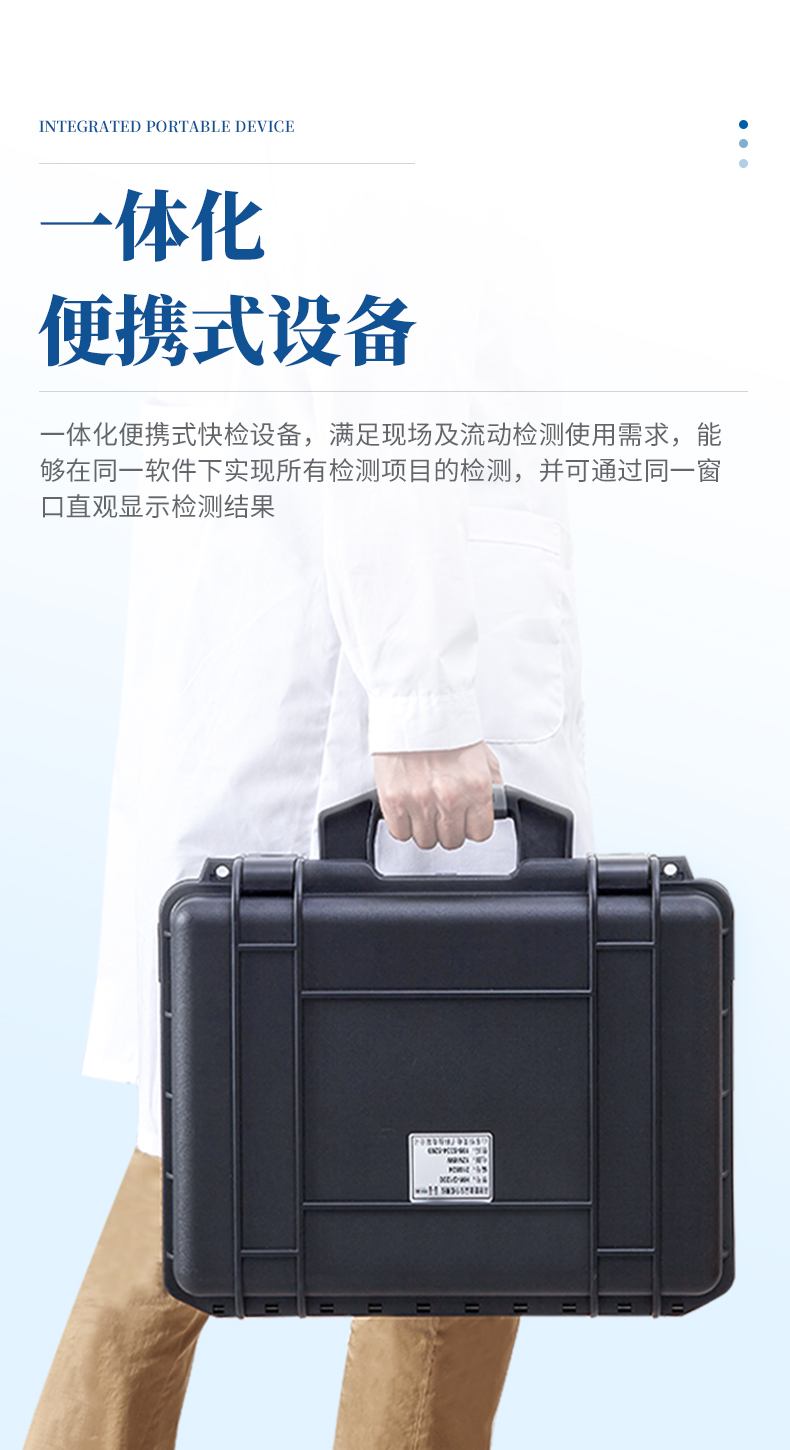 5、一體化便攜式快檢設(shè)備,滿足現(xiàn)場及流動(dòng)檢測使用需求,能夠在同一軟件下實(shí)現(xiàn)所有檢測項(xiàng)目的檢測,并可通過同一窗口直觀顯示檢測結(jié)果。