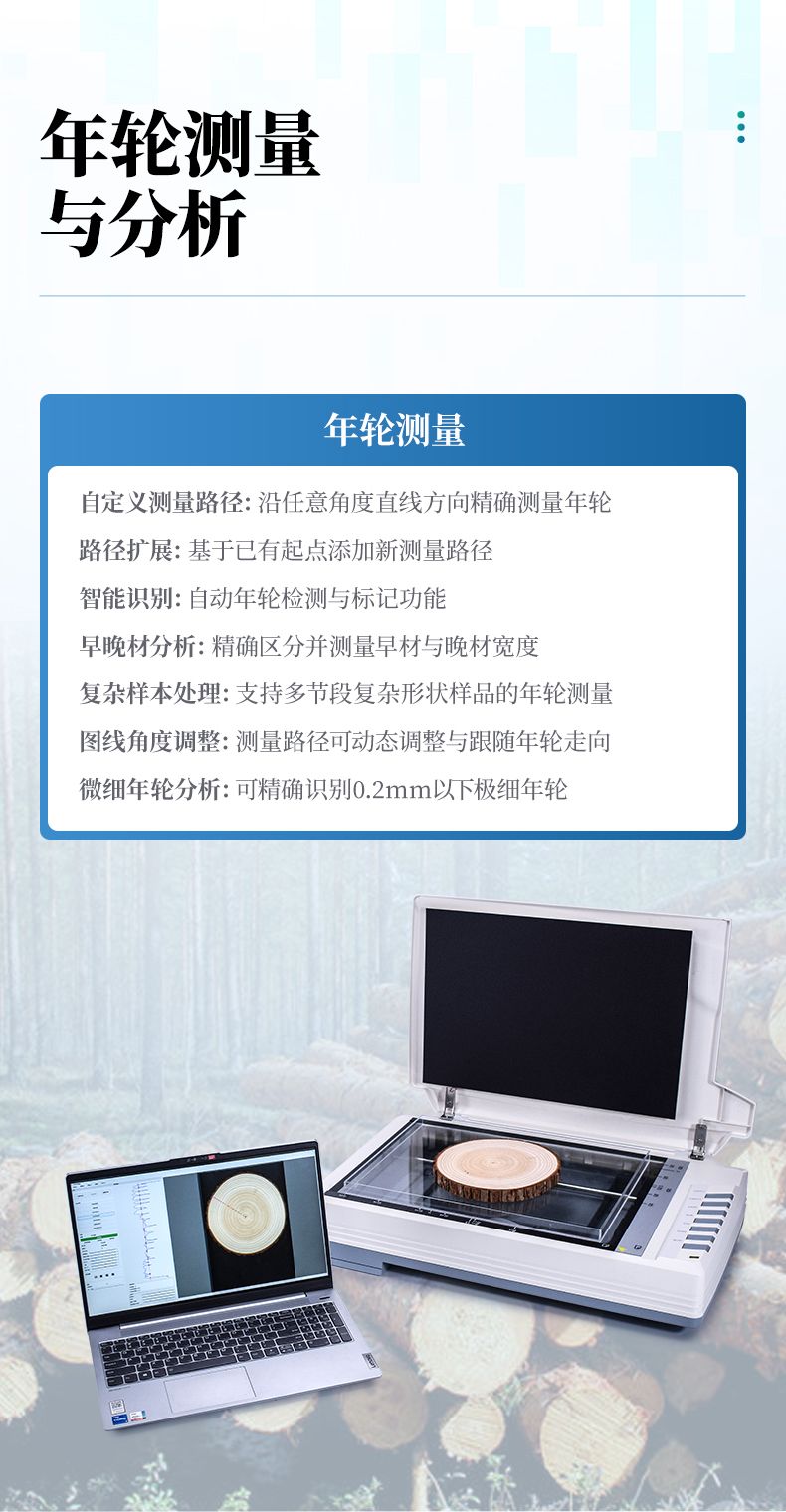 - 早晚材分析:精確區(qū)分并測量早材與晚材寬度