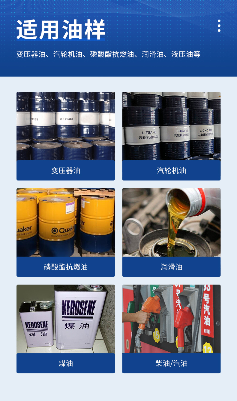 8、適用油樣:變壓器油、汽輪機(jī)油、磷酸酯抗燃油、潤(rùn)滑油等